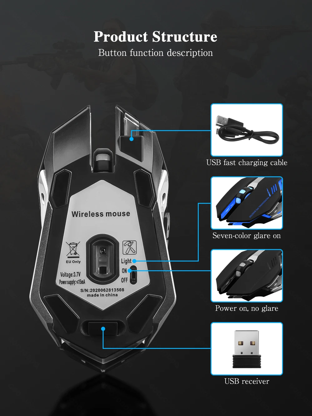 Comprar Ratón inalámbrico 2,4g para videojuegos, Mouse ergonómico silencioso para ordenador portátil, retroiluminado con LED para IOS y Android