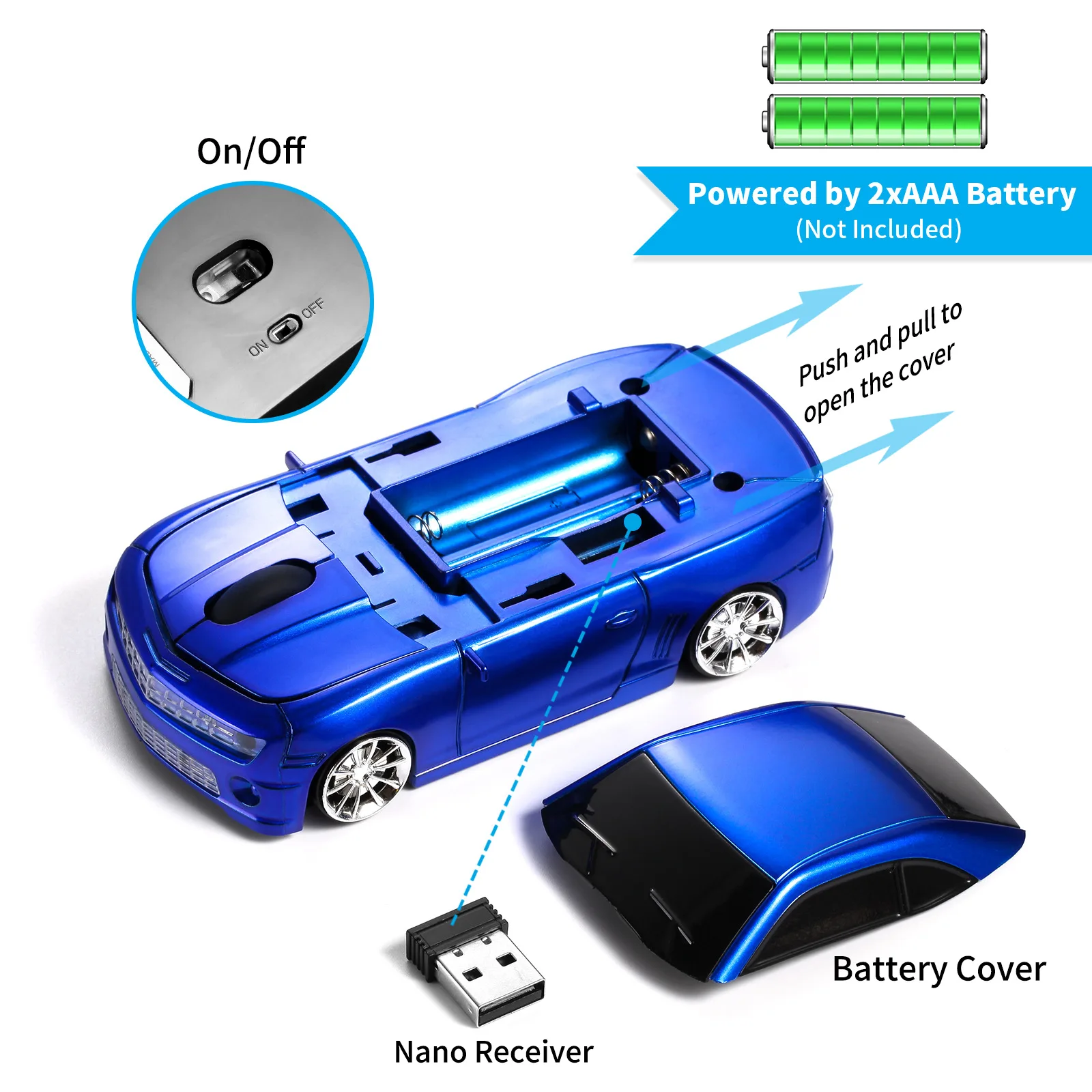 Comprar Ratón inalámbrico 3D ergonómico para coche, 2,4G, cómodo agarre, aspecto fresco, regalo para niño, uso de oficina, ordenador portátil, adecuado