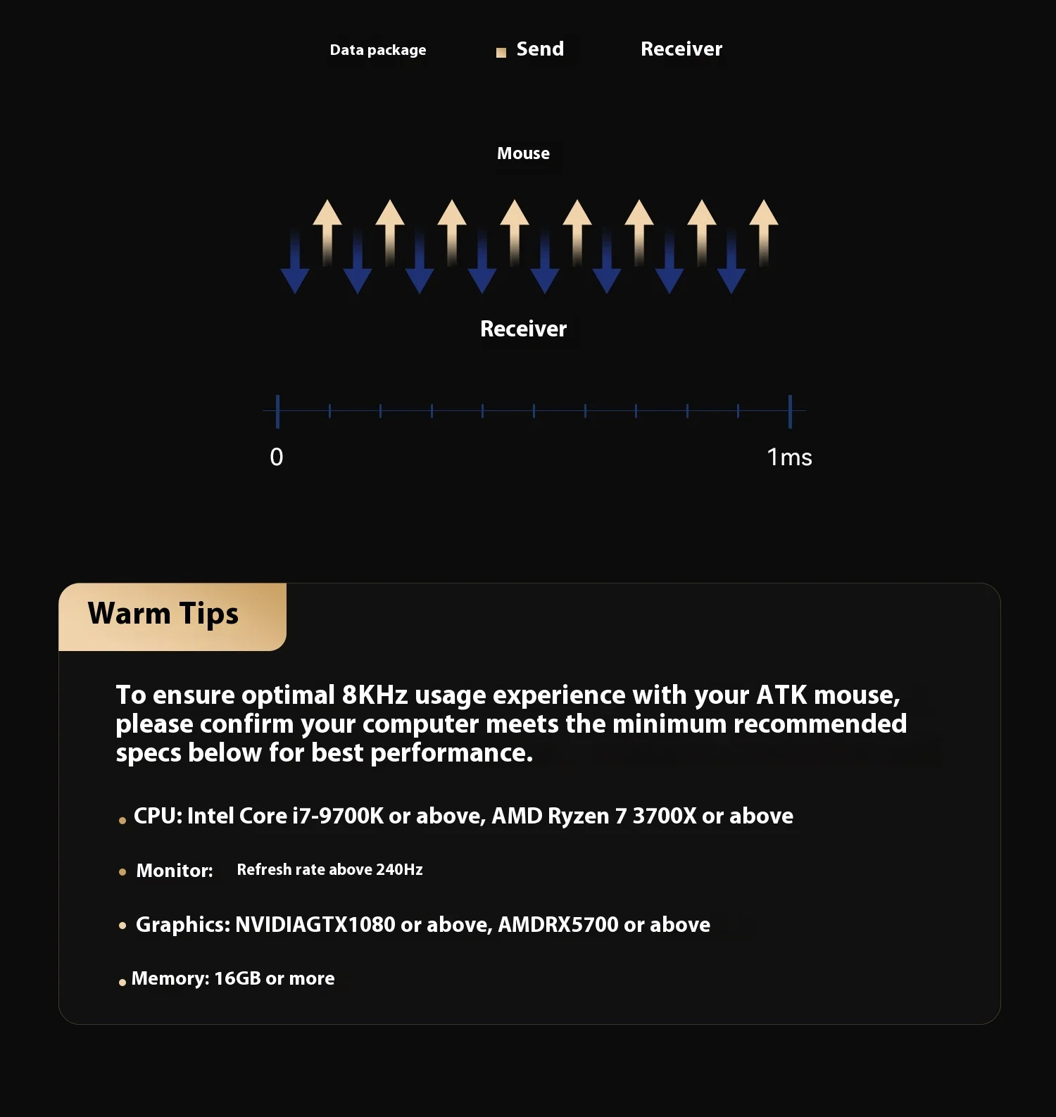 Velocidad de sondeo dual de 8000 Hz con cable/inalámbrico