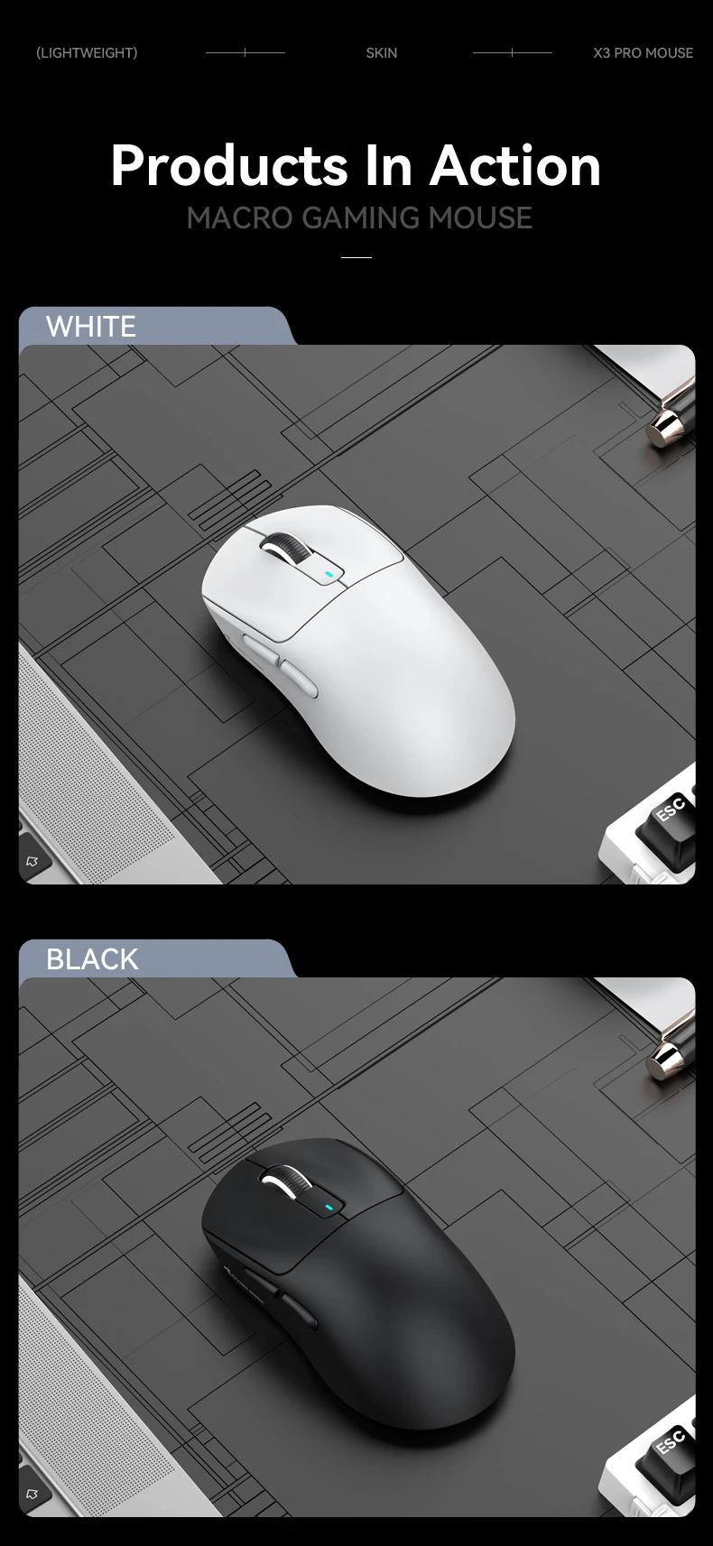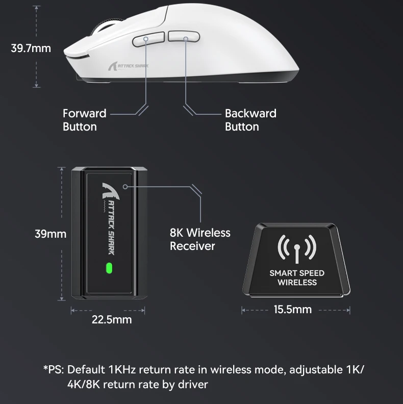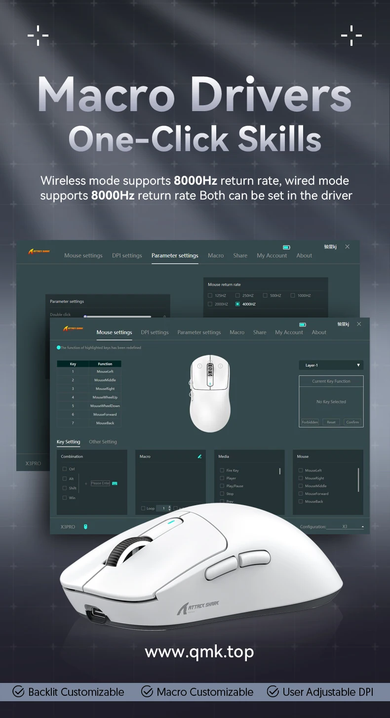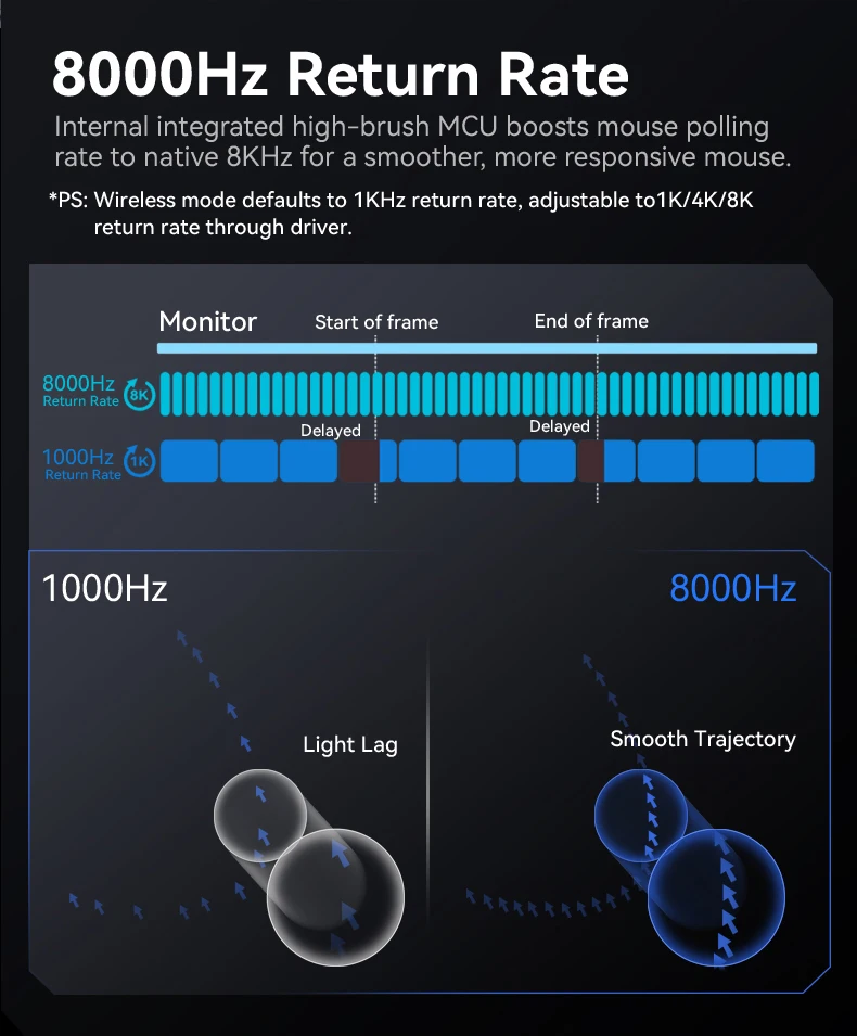 Nota: El mouse X3Pro ajusta su tasa de sondeo según el entorno de uso.Generalmente, cuanto más rápida sea la velocidad de movimiento y