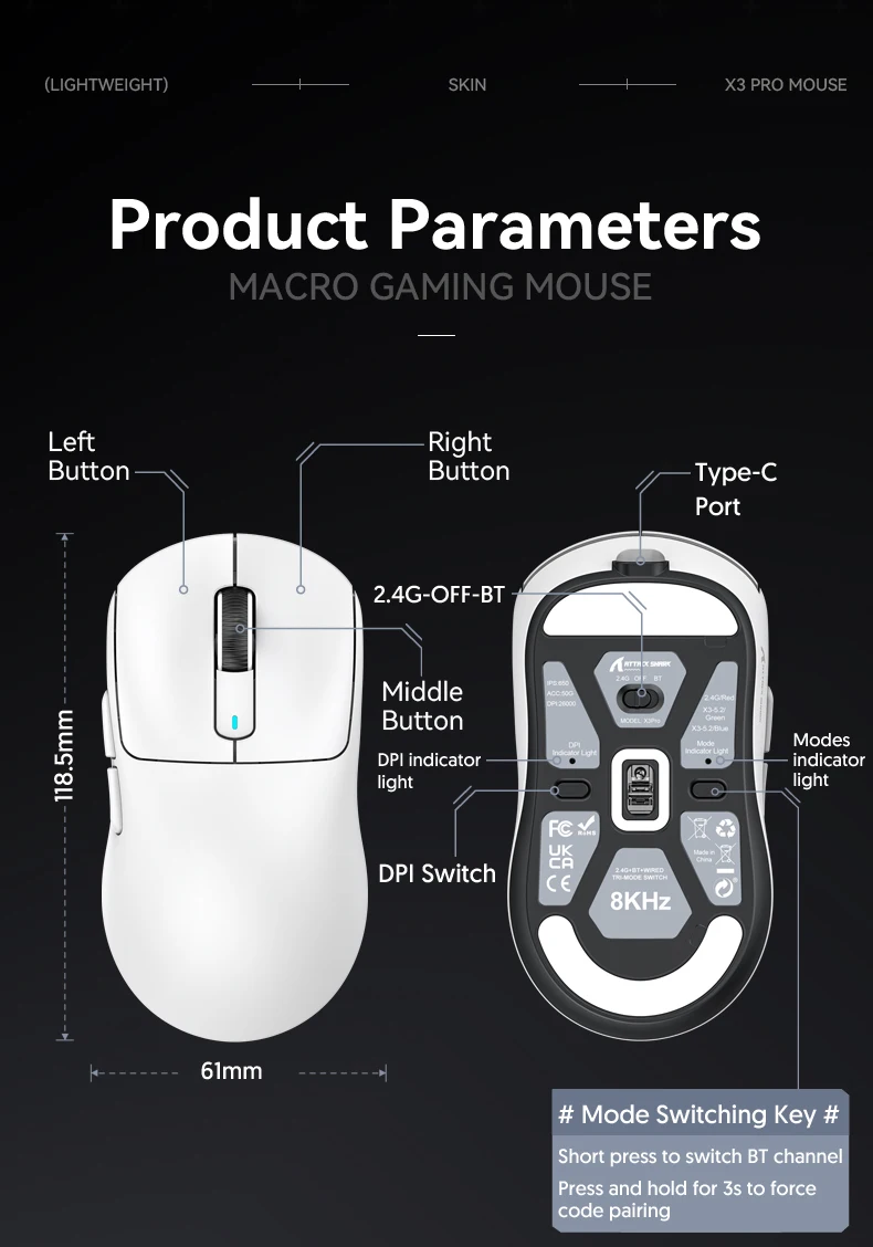 Peso X3pro: 59g±3g