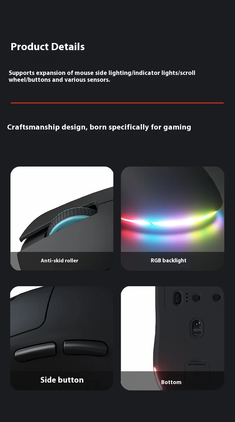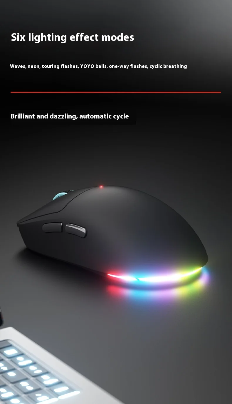 Ratón inalámbrico AttackFox, ratón Bluetooth de tres modos, DPI de 6 velocidades con retroiluminación RGB, ratón ligero para juegos, regalos para ordenador portátil y niño