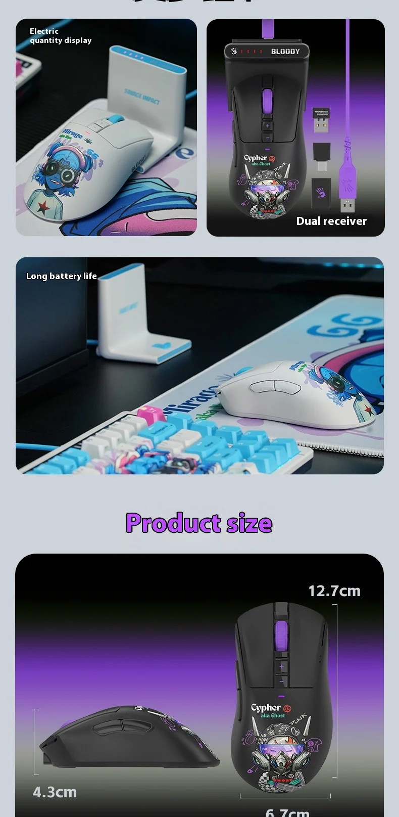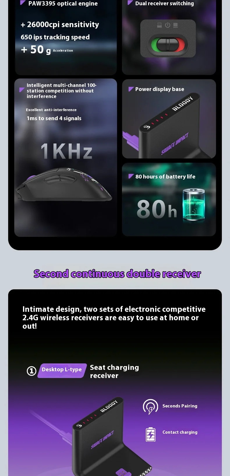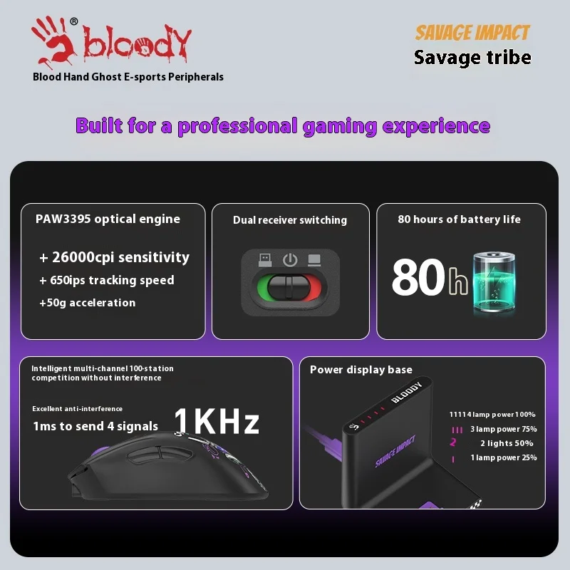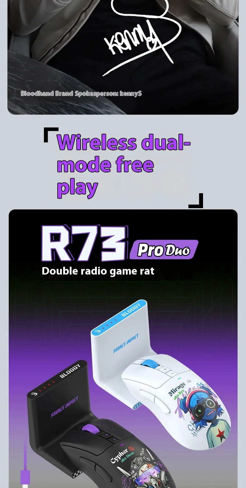 Comprar Ratón inalámbrico Bloody Savage Tribe R73Pro para oficina y juegos, batería ligera y duradera para cafeterías de Internet