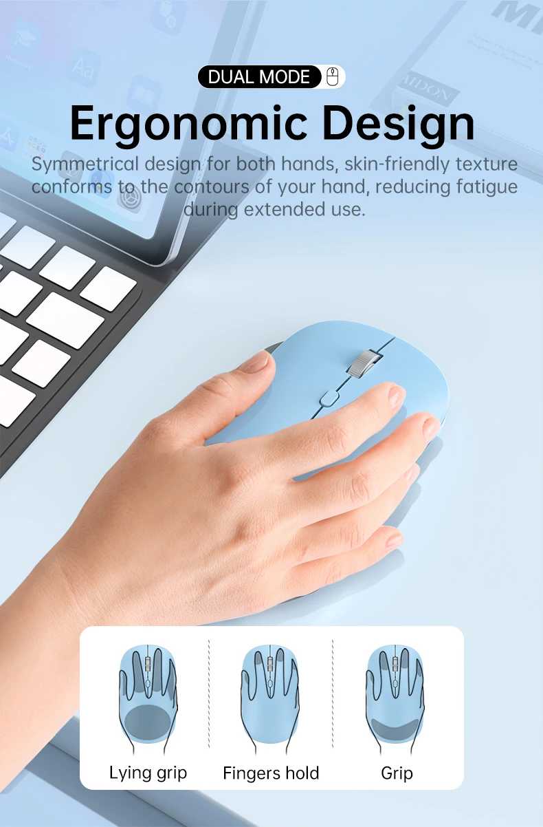 Conectividad de modo dual (2,4G + BT) Conéctese en cualquier momento y lugar Baja latencia para una experiencia de trabajo más cómoda