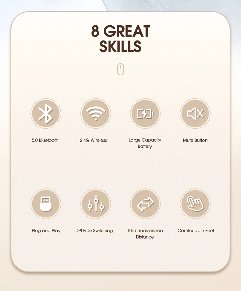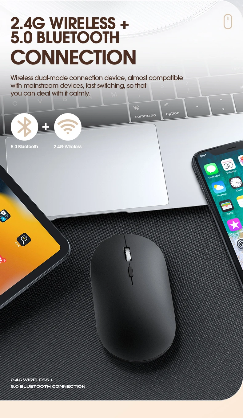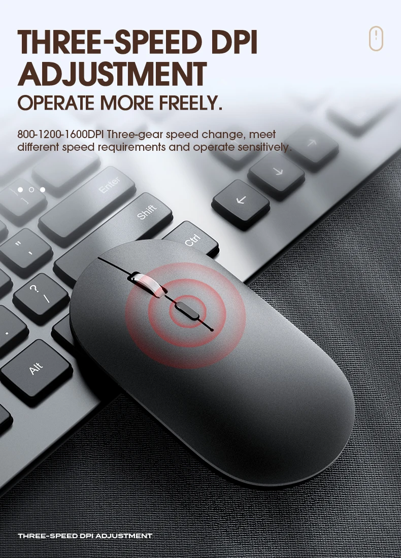 Diseño económico/Carga tipo C/Salud de 500 MAH/Ajuste de DPI de tres velocidades/Conexión Bluetooth inalámbrica 5.0 2.4G/Seguimiento preciso y trabajo suave