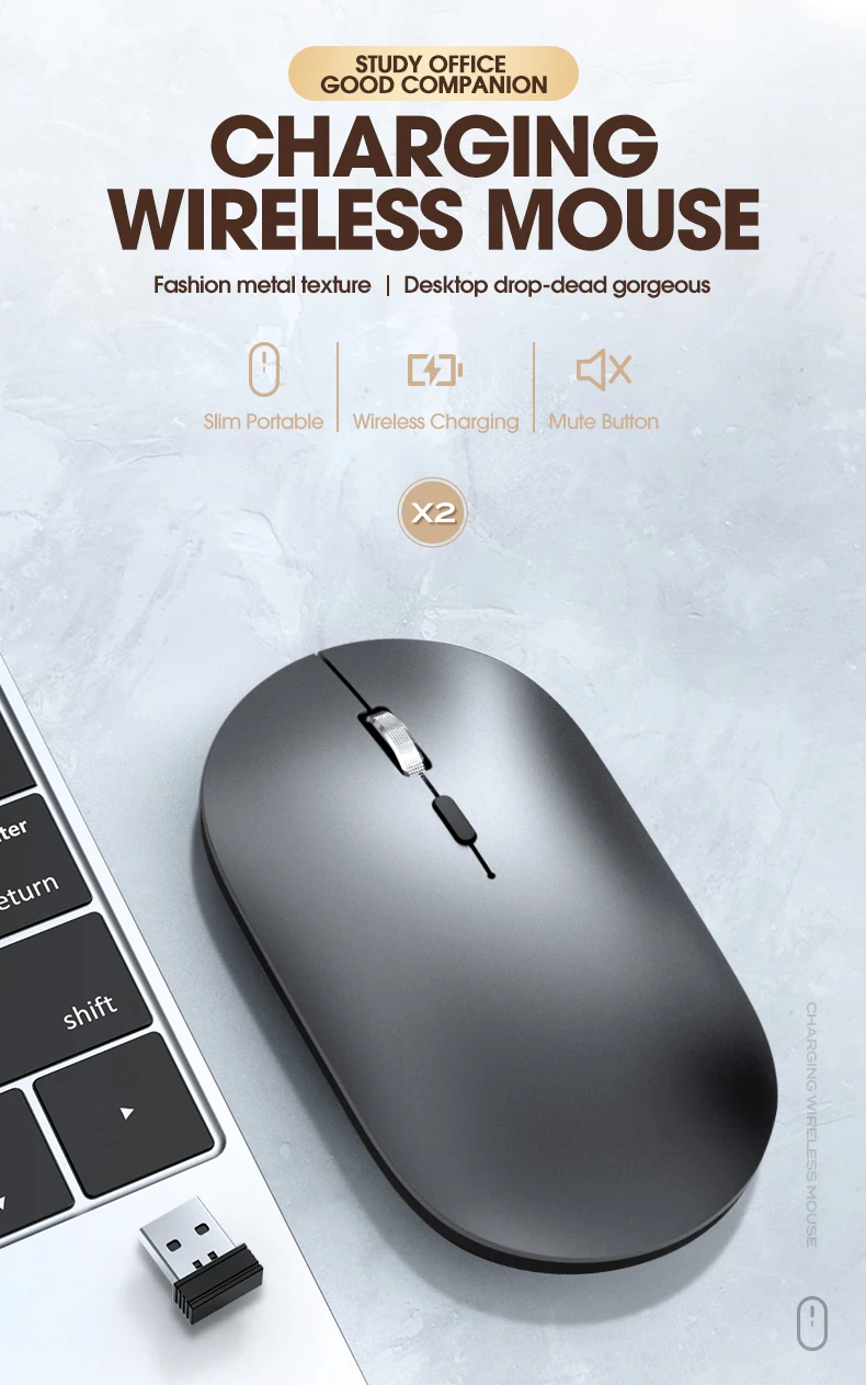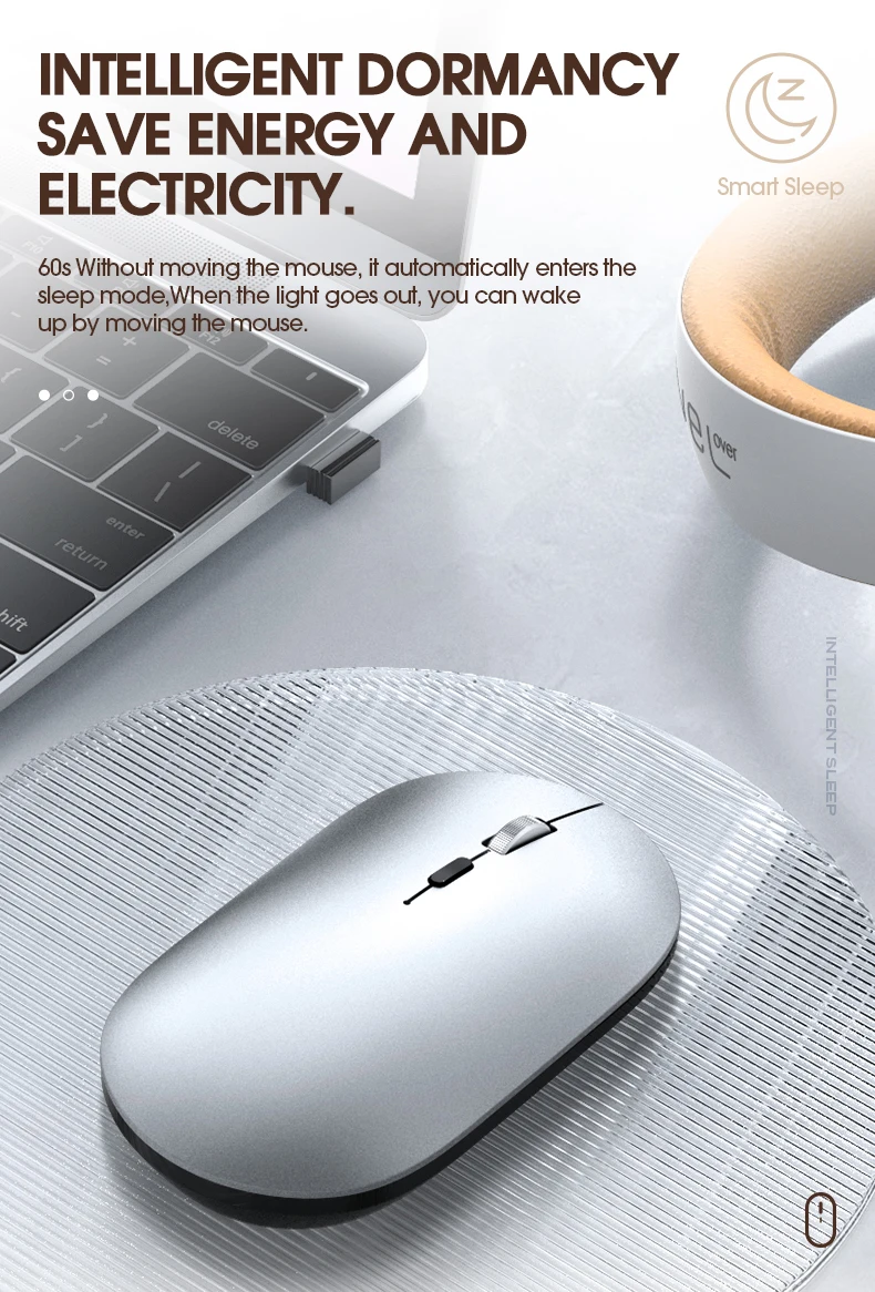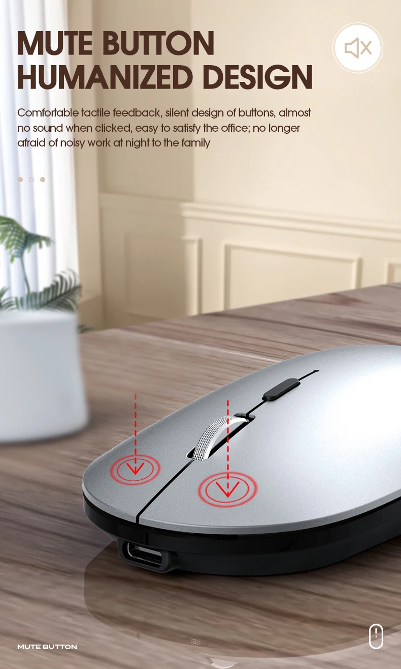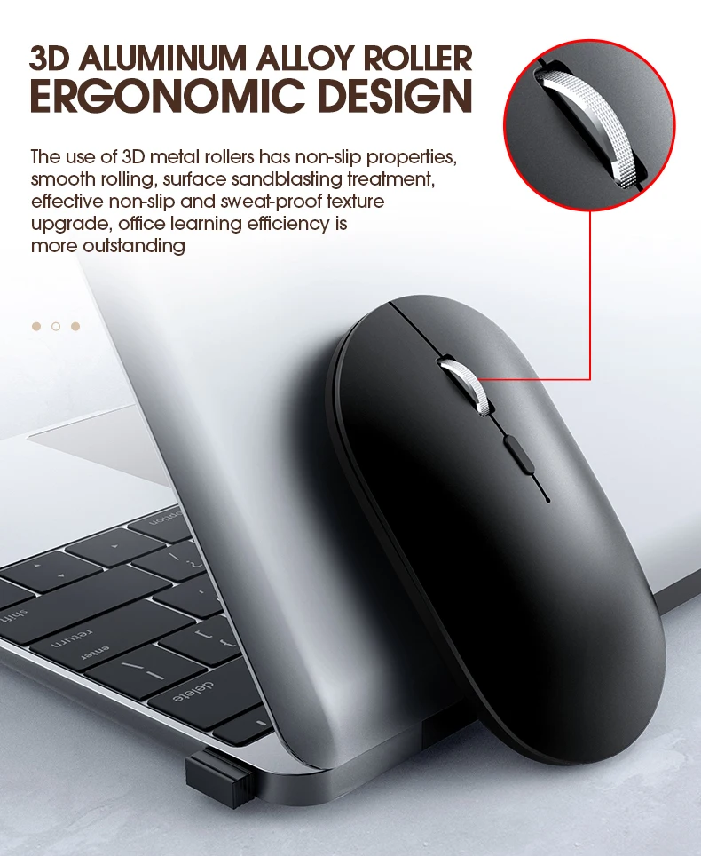 Carga inalámbrica/Botón silencioso/Distancia de transmisión de 10M/Rodillo de aleación de aluminio 3D