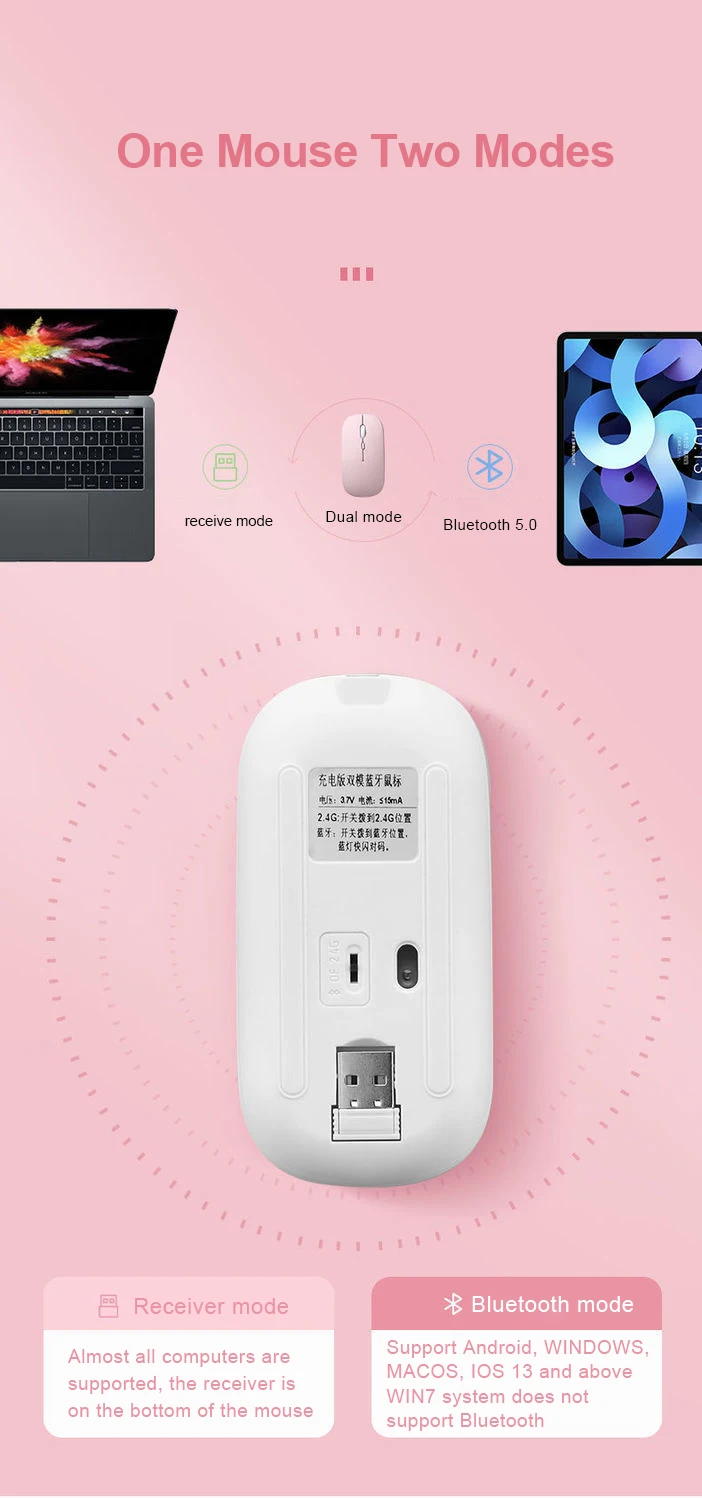Comprar Ratón inalámbrico con Bluetooth 4,0 para gamer, periférico recargable con dos modos, USB, ajustable, DPI, MINI, para MacBook, PC, iPad