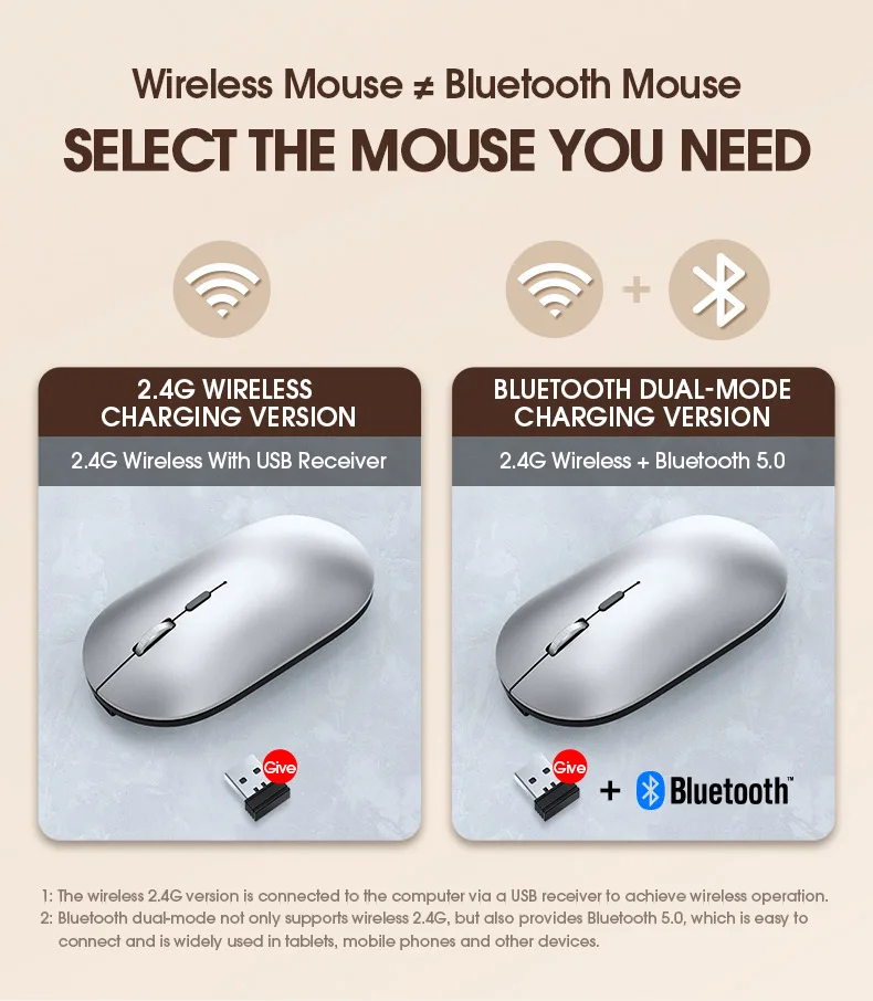Comprar Ratón inalámbrico Bluetooth 5,0 2,4G tipo C recargable silencioso ergonómico para IPAD Macbook Air/Pro portátil tableta ordenador Oficina