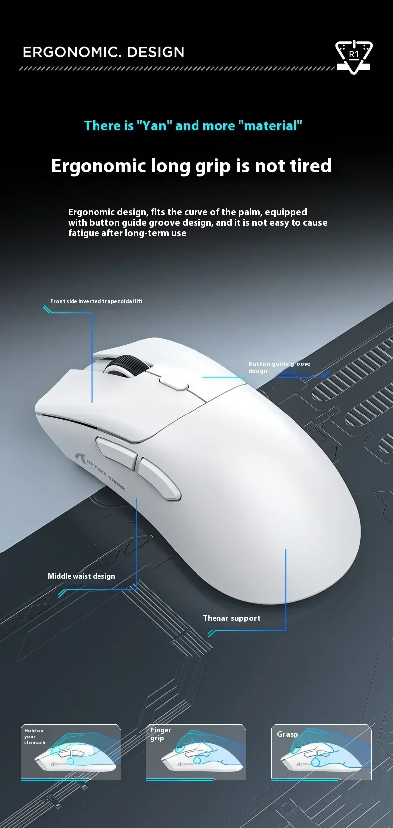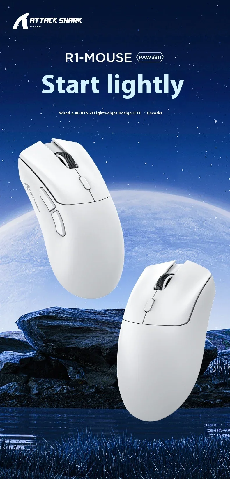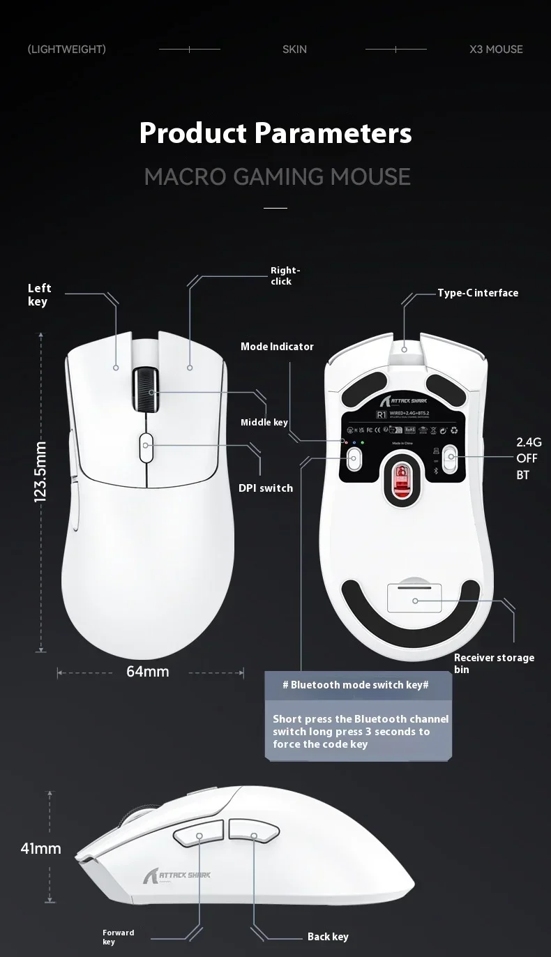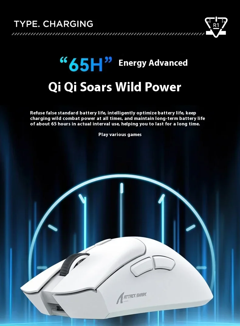 Ratón inalámbrico Bluetooth Attack Shark R1 Paw3311, ratón Tri Mode para deportes electrónicos, ergonómico, ligero, accesorios para juegos de Pc
