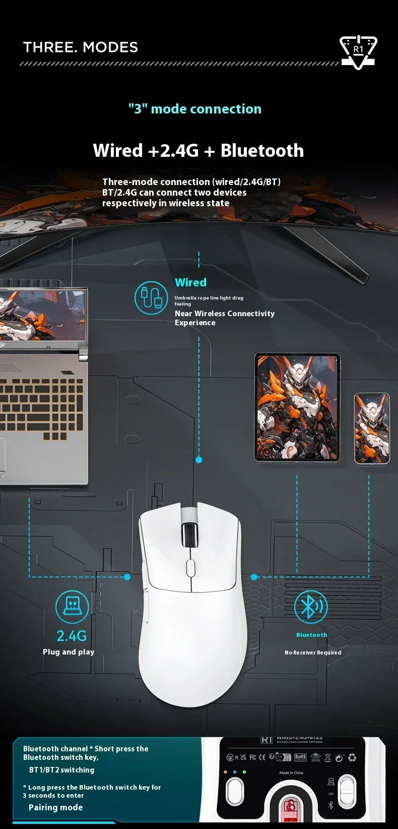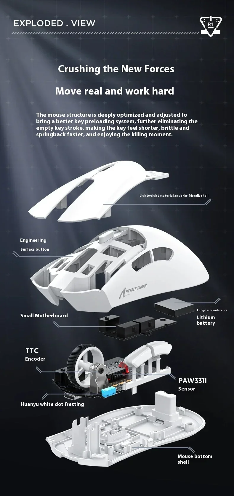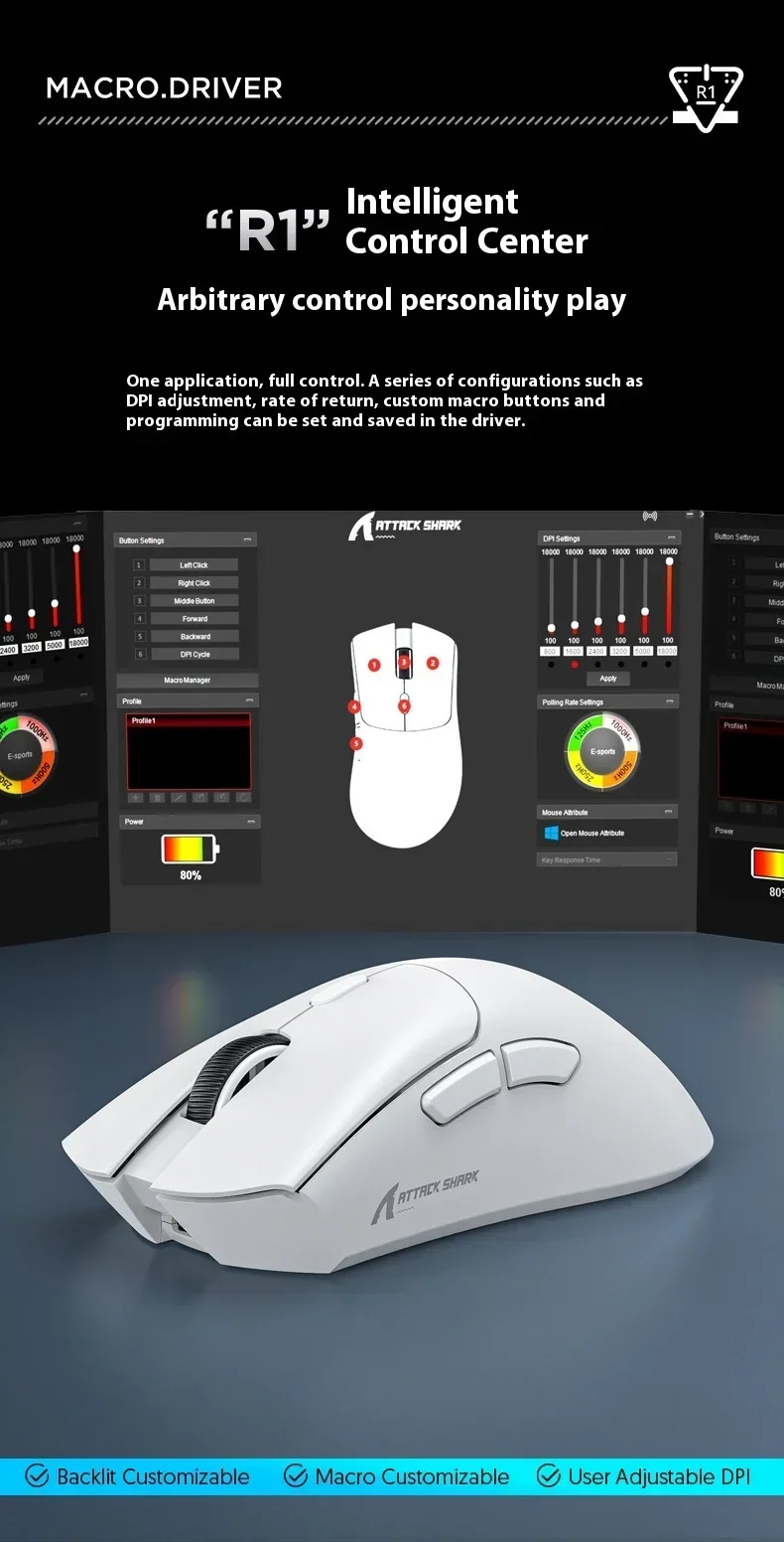 Ratón inalámbrico Bluetooth Attack Shark R1 Paw3311, ratón Tri Mode para deportes electrónicos, ergonómico, ligero, accesorios para juegos de Pc