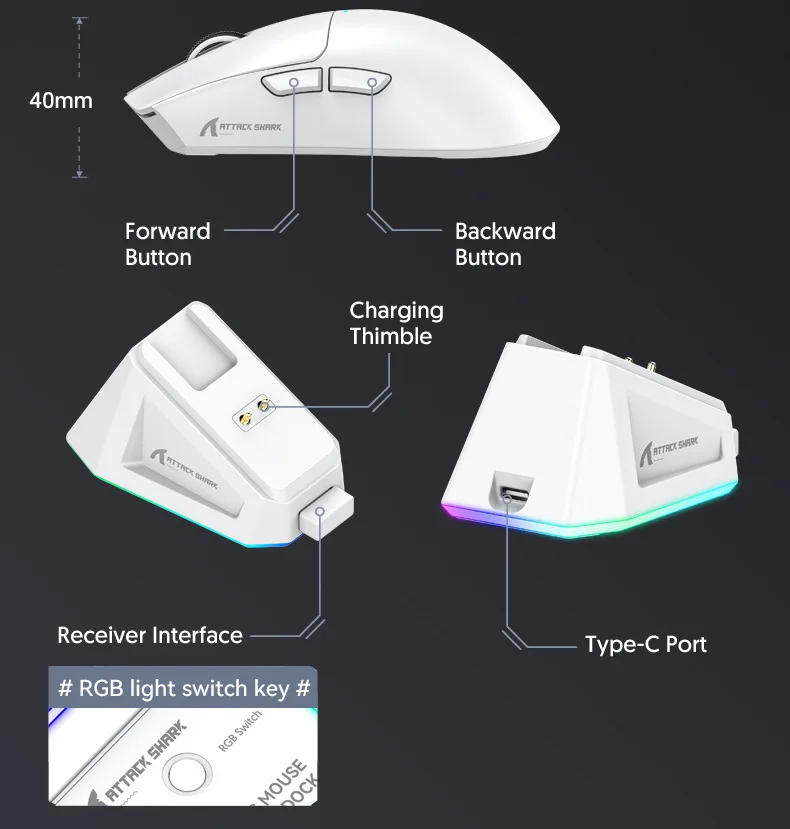 Attack Shark X11 Wireless Bluetooth Mouse RGB Triple Mode Magnetic Charging Dock PAW3311 Ultra Light Pitch Gaming Mouse