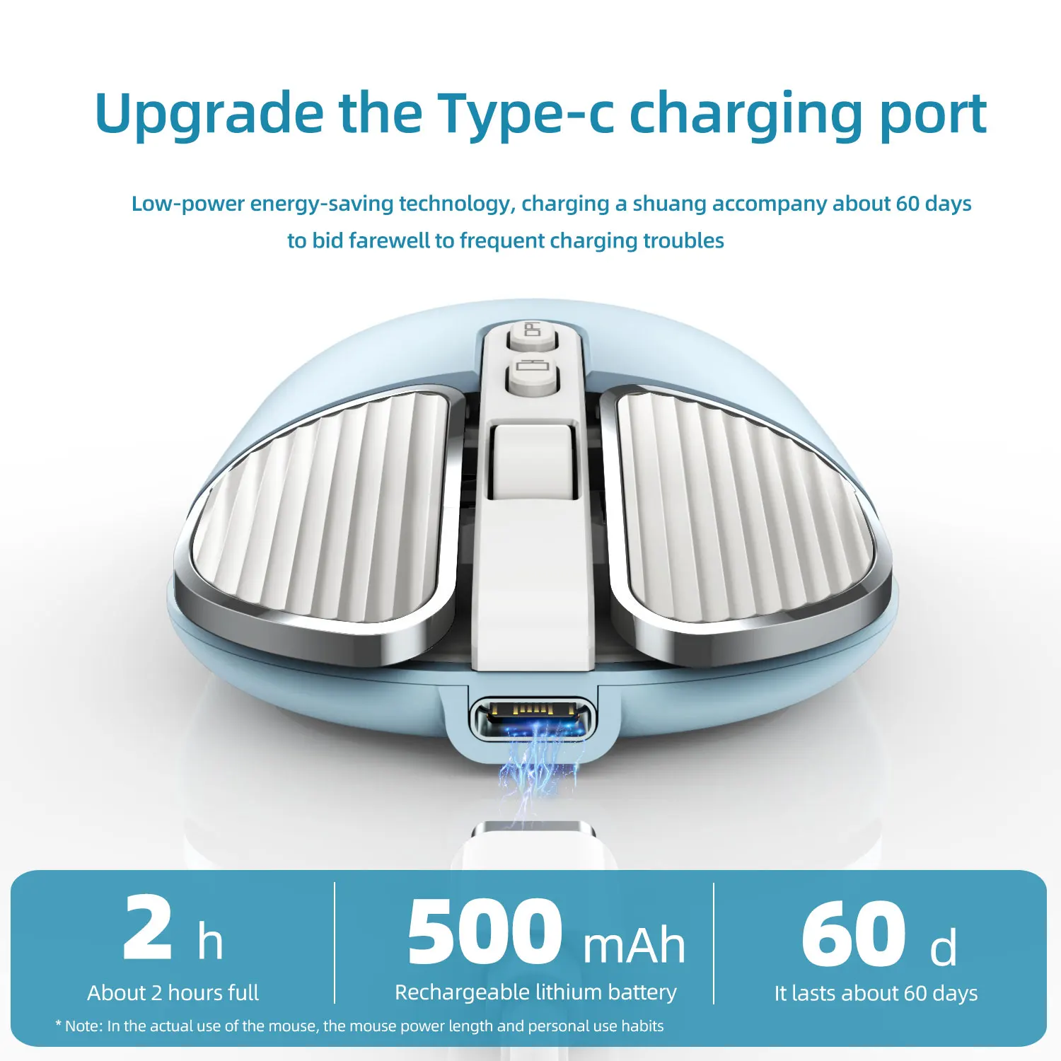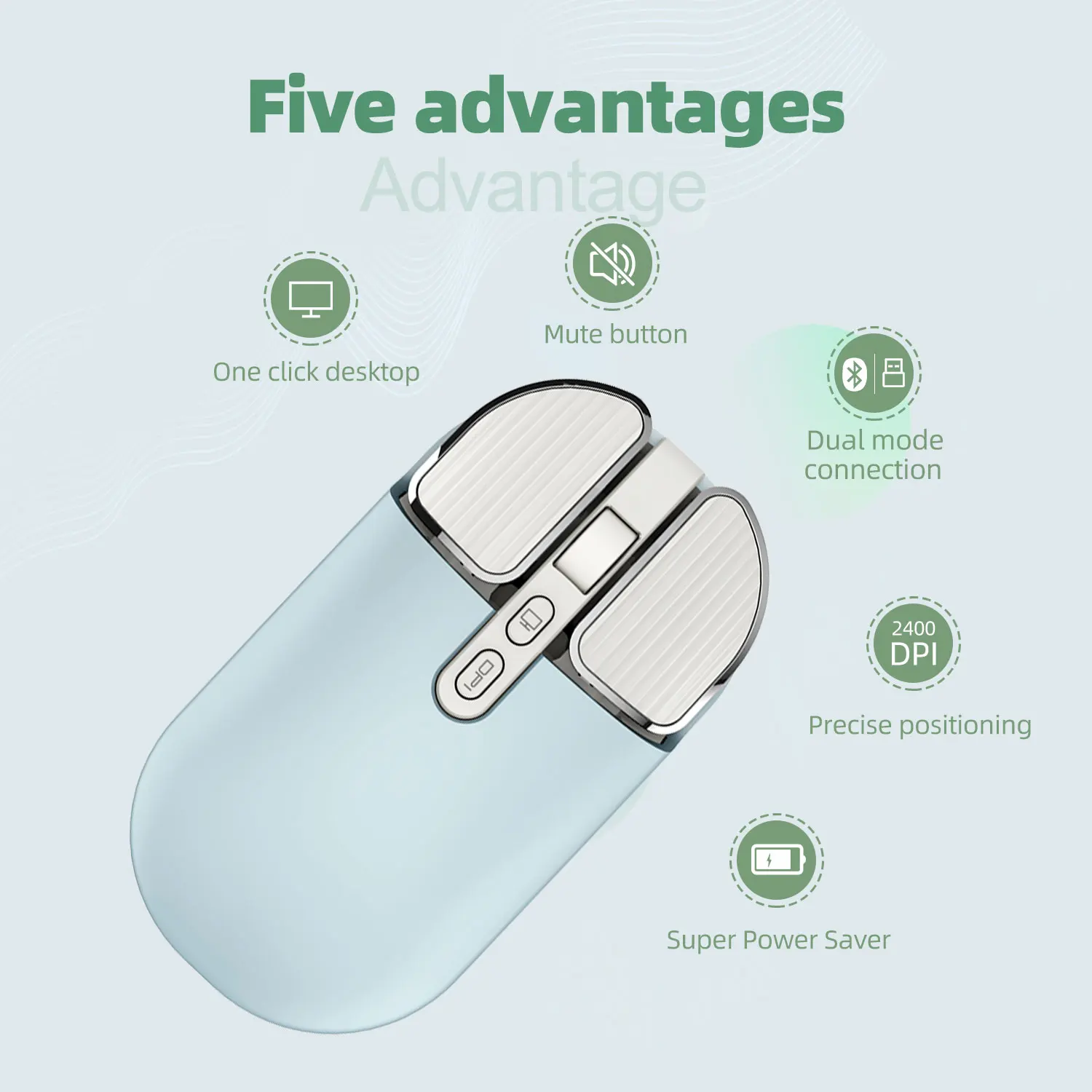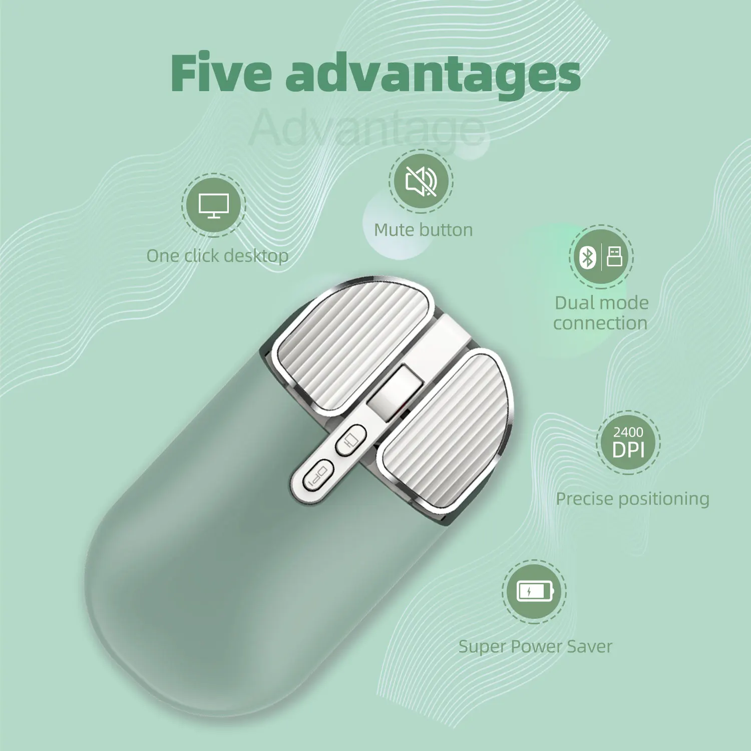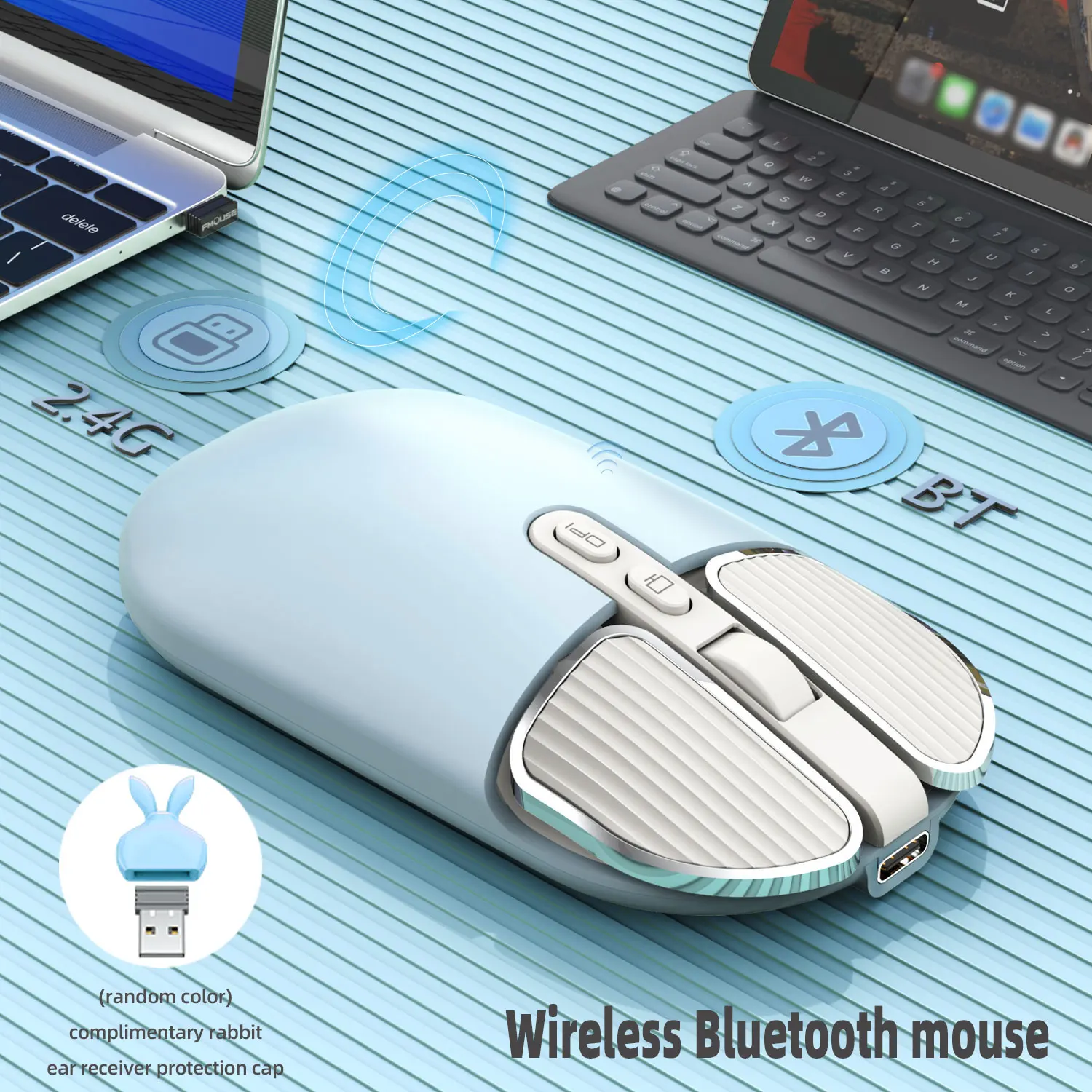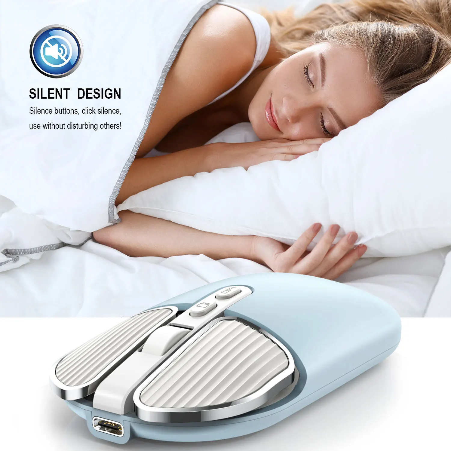 Comprar Ratón inalámbrico con Bluetooth, dispositivo silencioso de modo Dual, 5D, 2400DPI, ajustable, 2,4 Ghz, USB, recargable, para iPad, tabletas y portátiles
