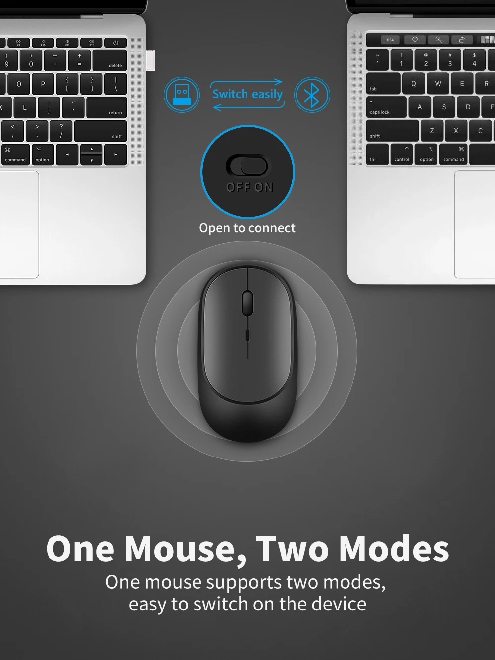 Modo B: cambia el interruptor del ratón a Bluetooth, pulsa el botón de emparejamiento durante 2-3 segundos, el Bluetooth del ordenador encontrará el ratón y lo emparejará.