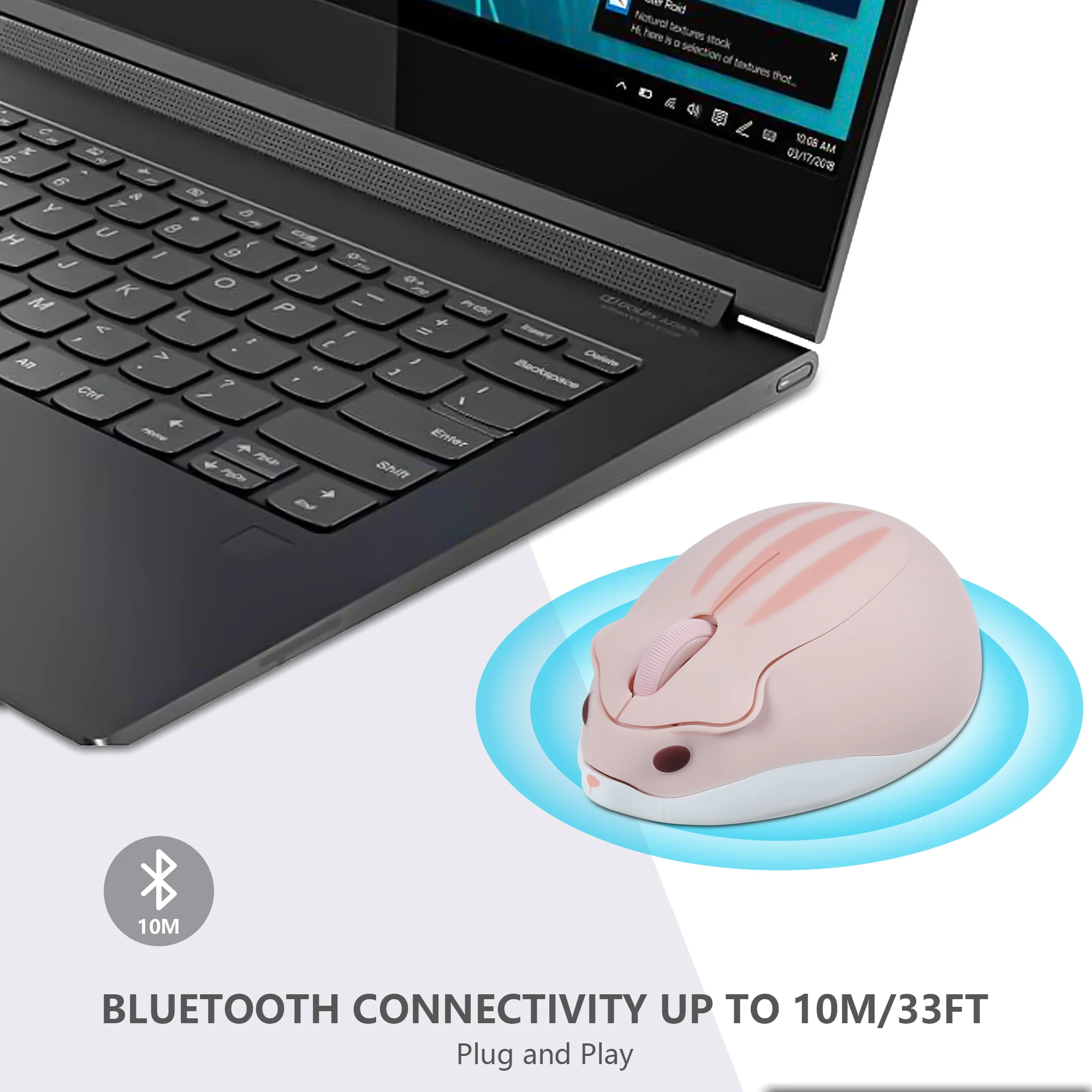 Comprar Ratón inalámbrico Bluetooth para hámster, Mouse silencioso, Ligero, portátil, batería de larga duración, PC, MAC, multisistema, uso de oficina