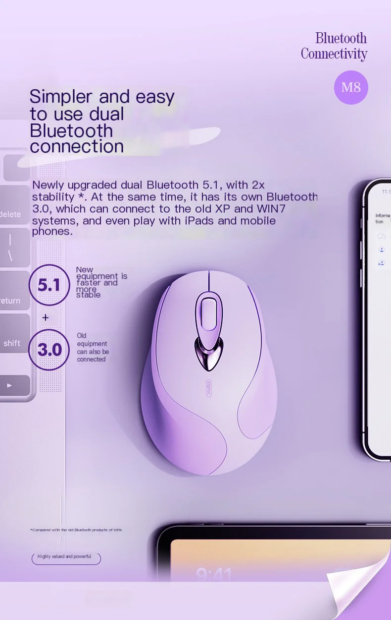 Comprar Ratón inalámbrico con Bluetooth, Mouse morado silencioso, USB, ergonómico, recargable, para ordenador, portátil, Macbook