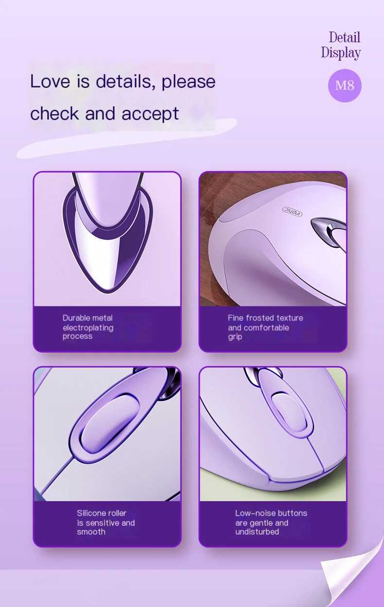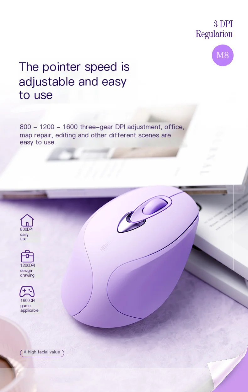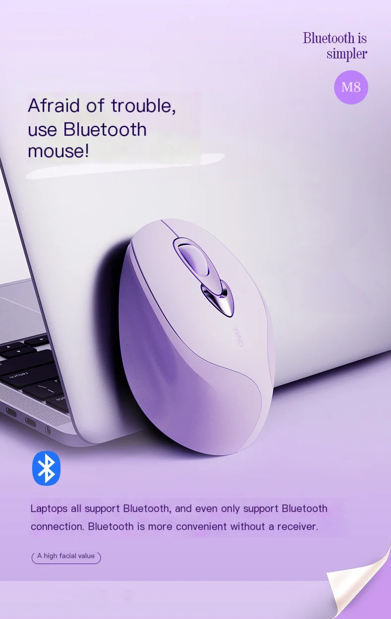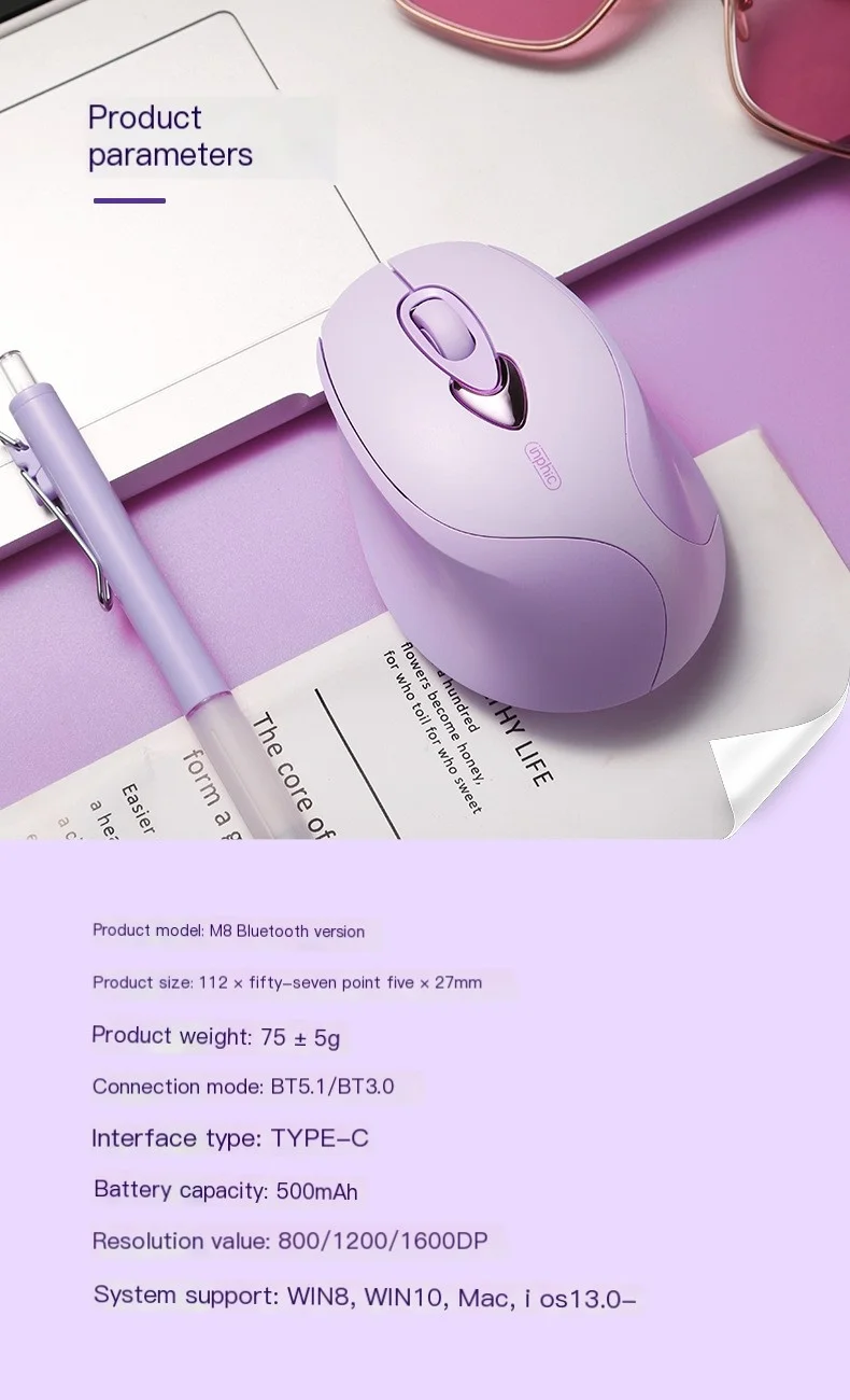 Purple Mute Wireless Bluetooth Mouse USB Ergonómico Recargable Gamer Mouse para computadora Laptop Macbook