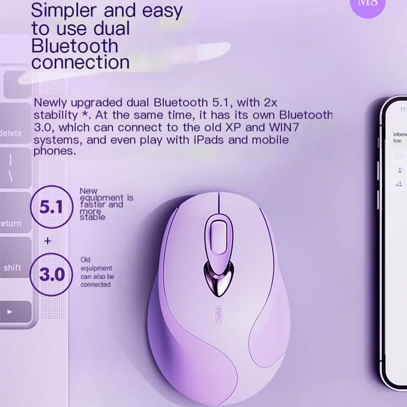 Purple Mute Wireless Bluetooth Mouse USB Ergonómico Recargable Gamer Mouse para computadora Laptop Macbook