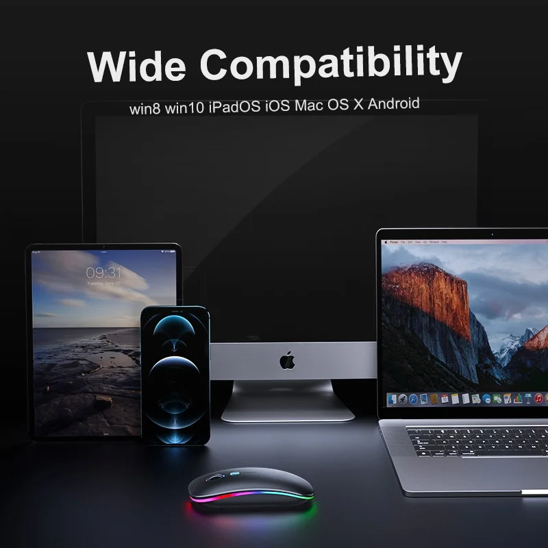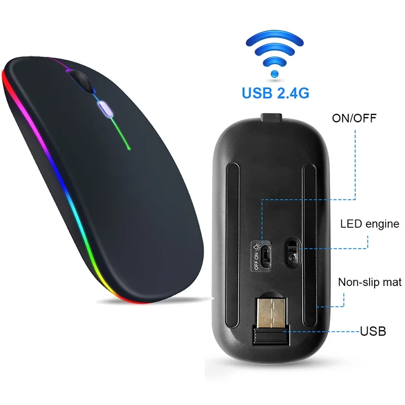 Comprar Ratón inalámbrico con Bluetooth para ordenador, periférico RGB recargable con retroiluminación LED, ergonómico, para juegos, portátil, PC y Notebook