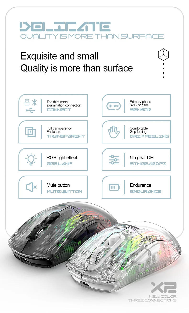 Tercera conexión, conexión por cable, conexión inalámbrica de 2,4 Ghz, conexión compatible con Bluetooth. Es adecuado para múltiples dispositivos para conectar tres dispositivos al mismo tiempo,