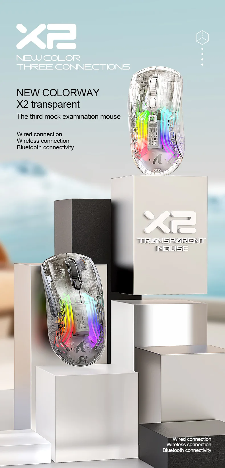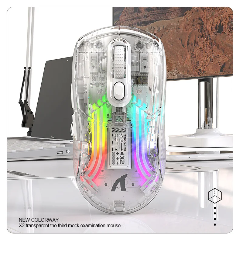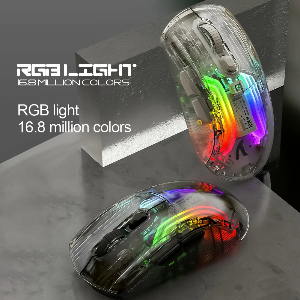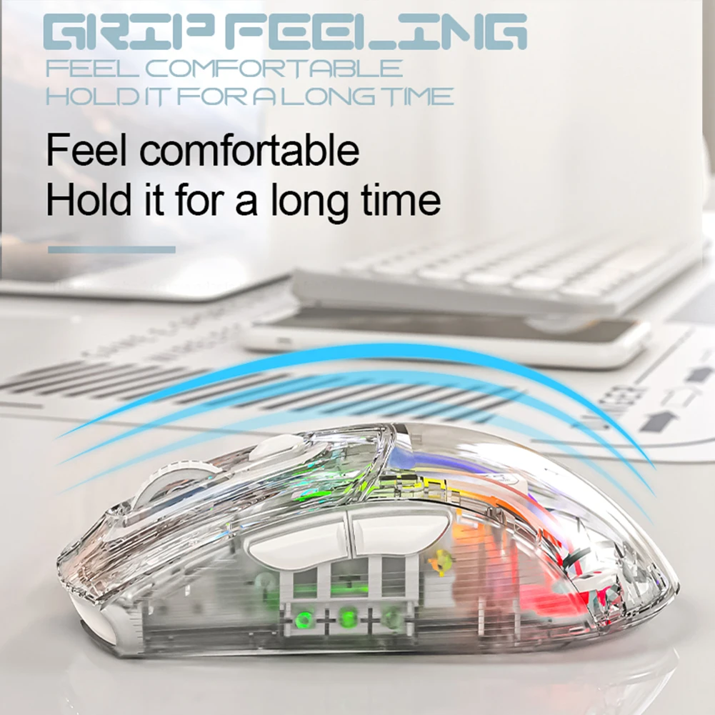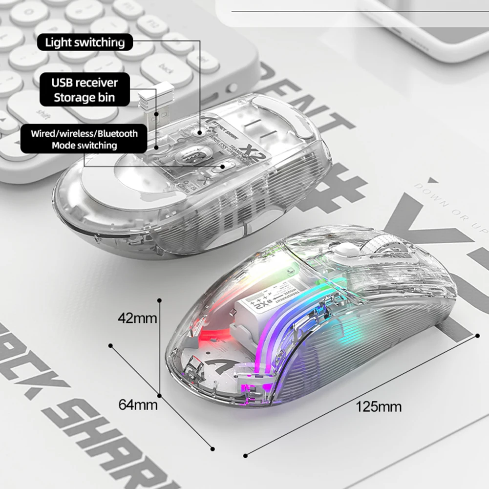 Comprar Ratón inalámbrico con Bluetooth recargable tipo C, Mouse transparente con cable, retroiluminado, RGB, silencioso, para juegos, portátil, PC, nuevo