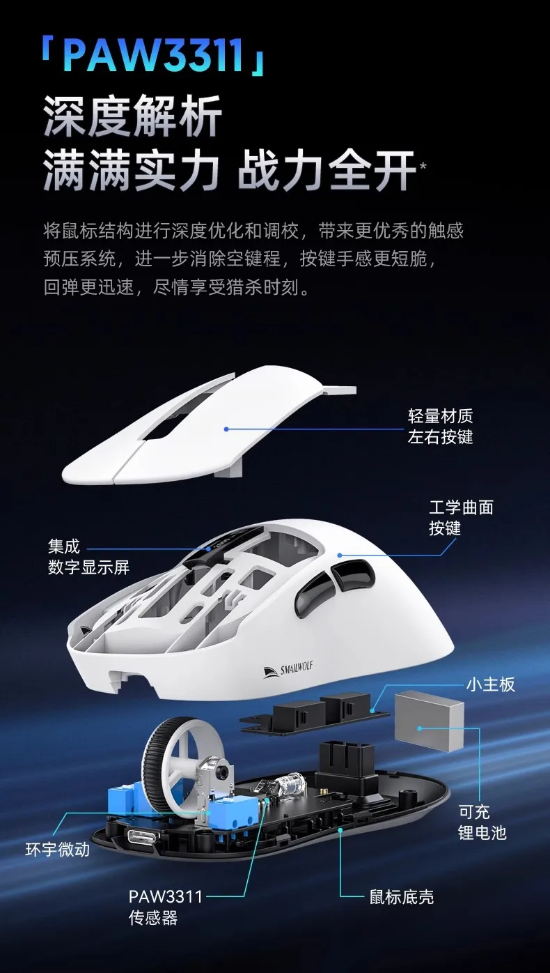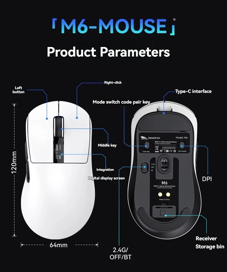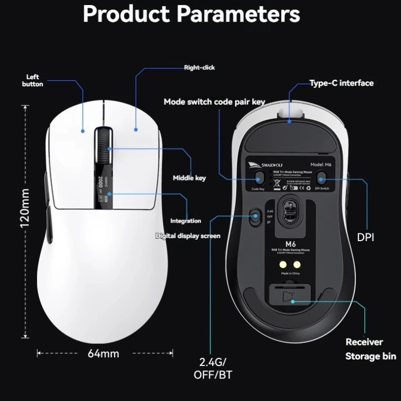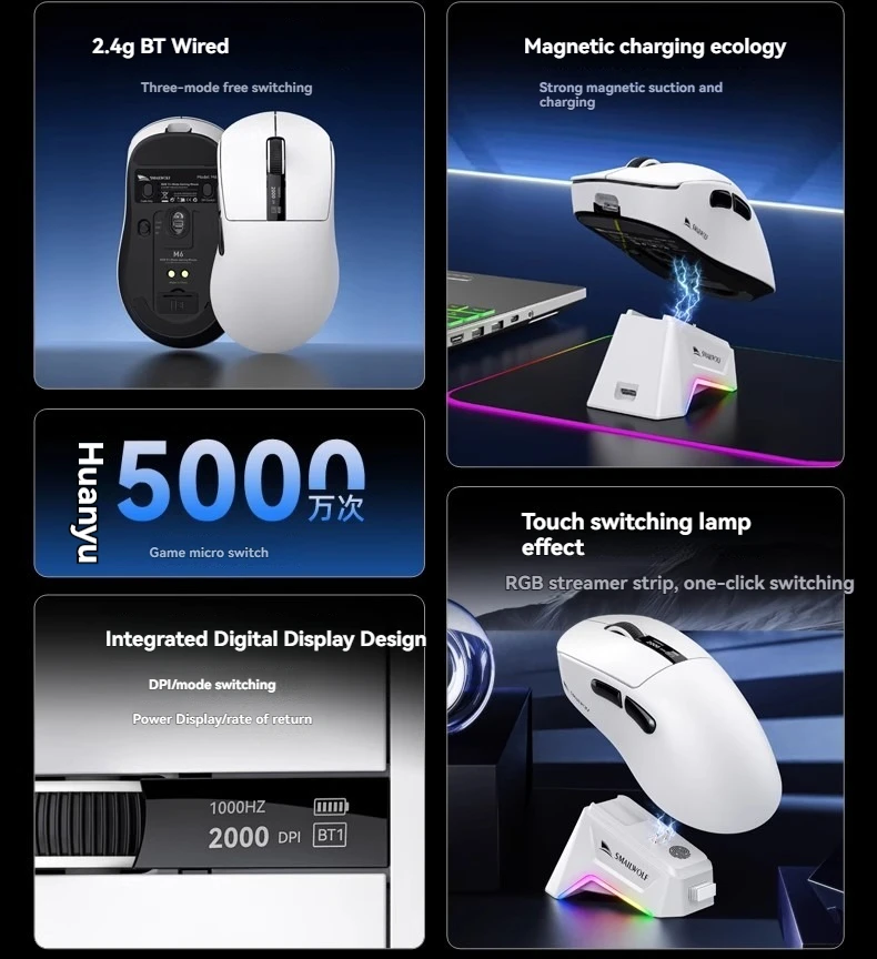 Comprar Ratón inalámbrico Bluetooth Smailwolf M6, ratón PAW3311 para juegos multimodo, carga magnética ligera, ratón personalizado de 12KDPI y 1KHZ