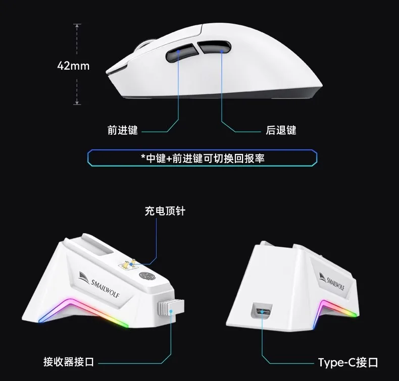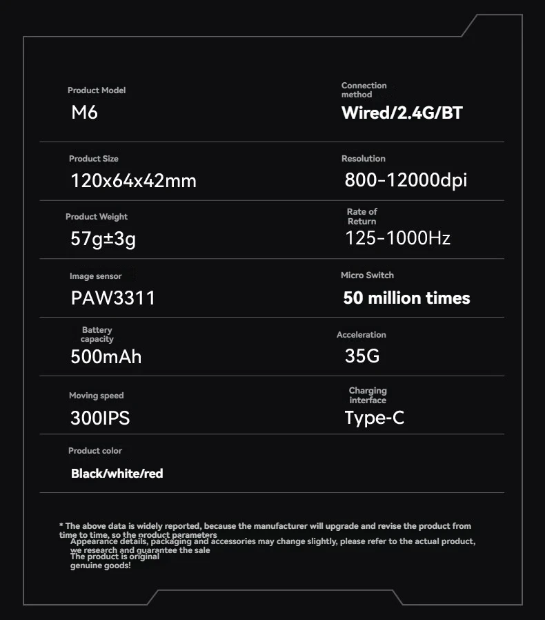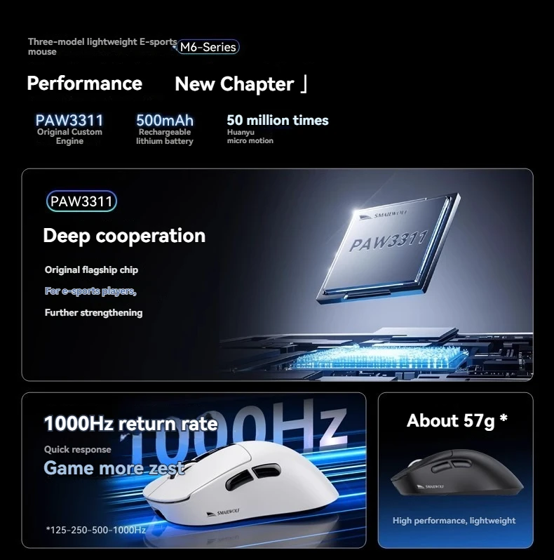 Smailwolf M6 ratón inalámbrico Bluetooth Gaming de tres modos PAW3311 ratones ligero carga magnética 12KDPI 1KHZ ratón personalizado