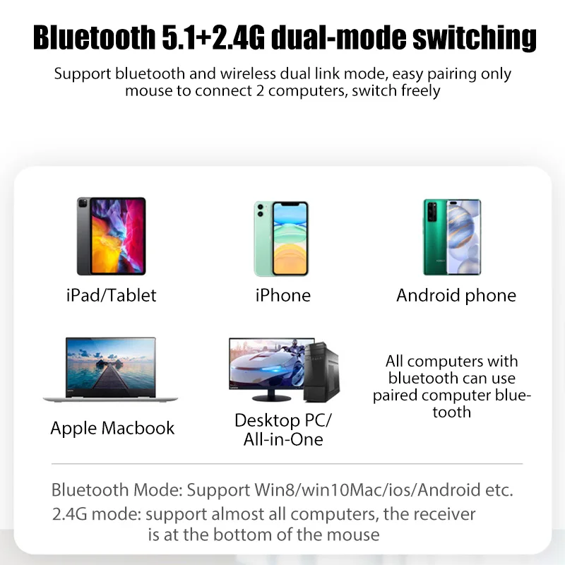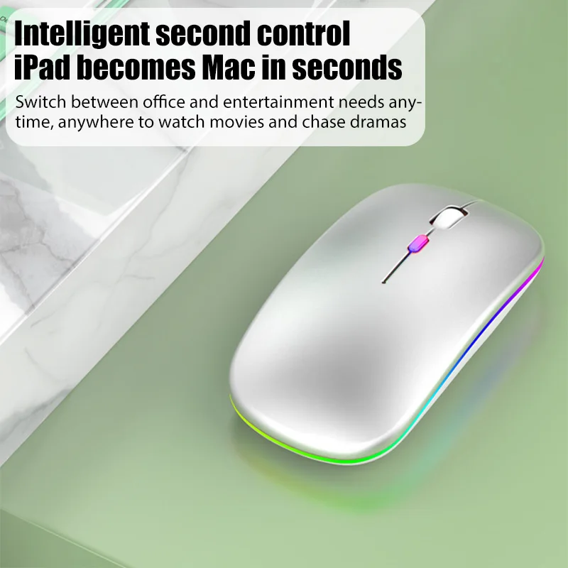 Comprar Ratón inalámbrico con Bluetooth para tableta, dispositivo silencioso con carga RGB, 2,4G, USB, portátil, para videojuegos