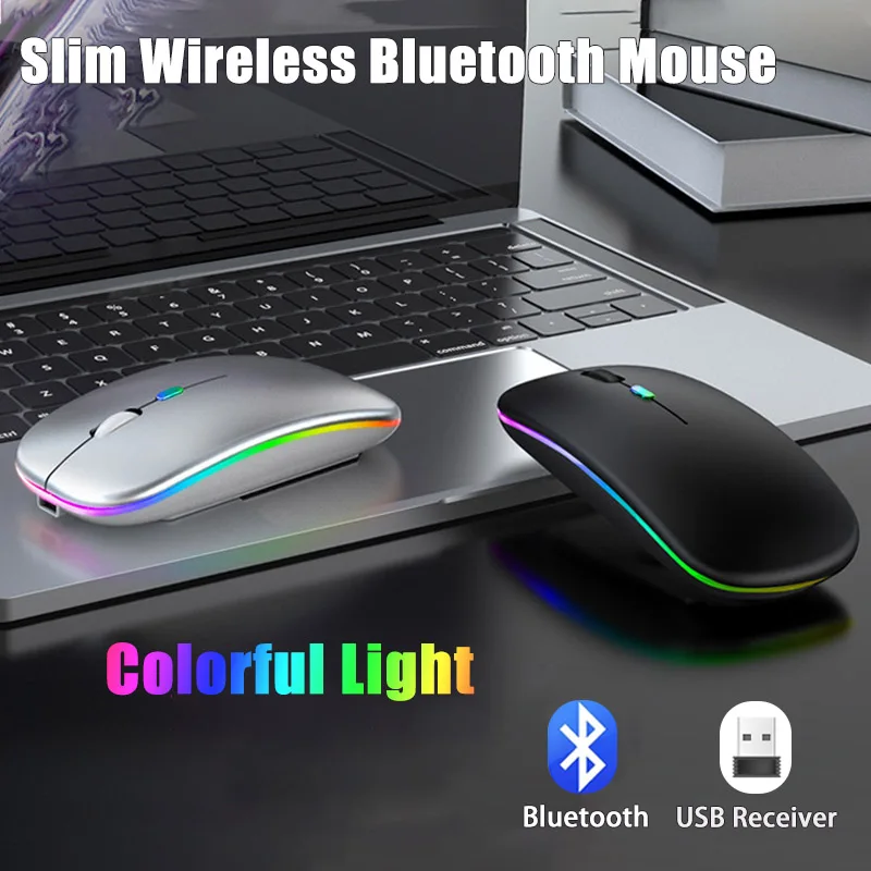 Comprar Ratón inalámbrico con Bluetooth para tableta, dispositivo silencioso con carga RGB, 2,4G, USB, portátil, para videojuegos