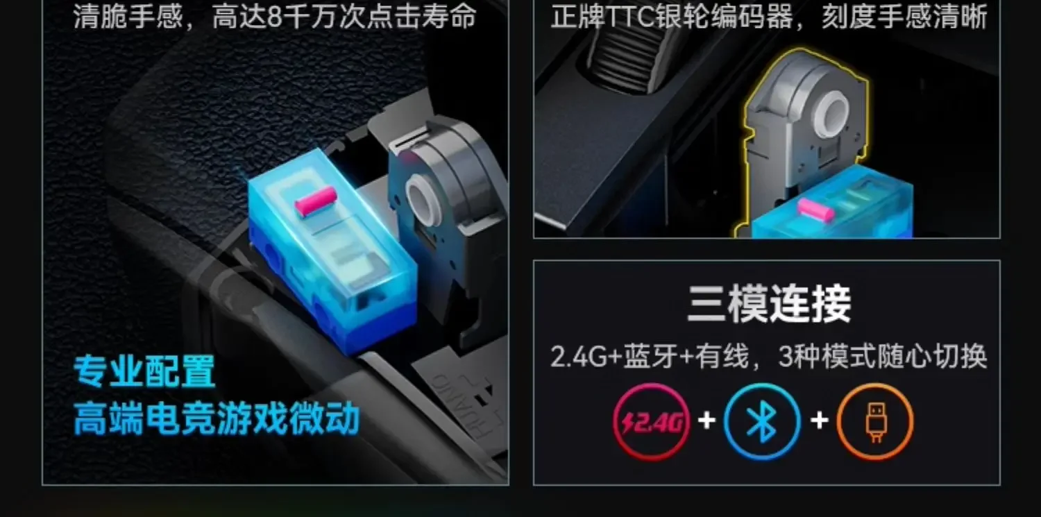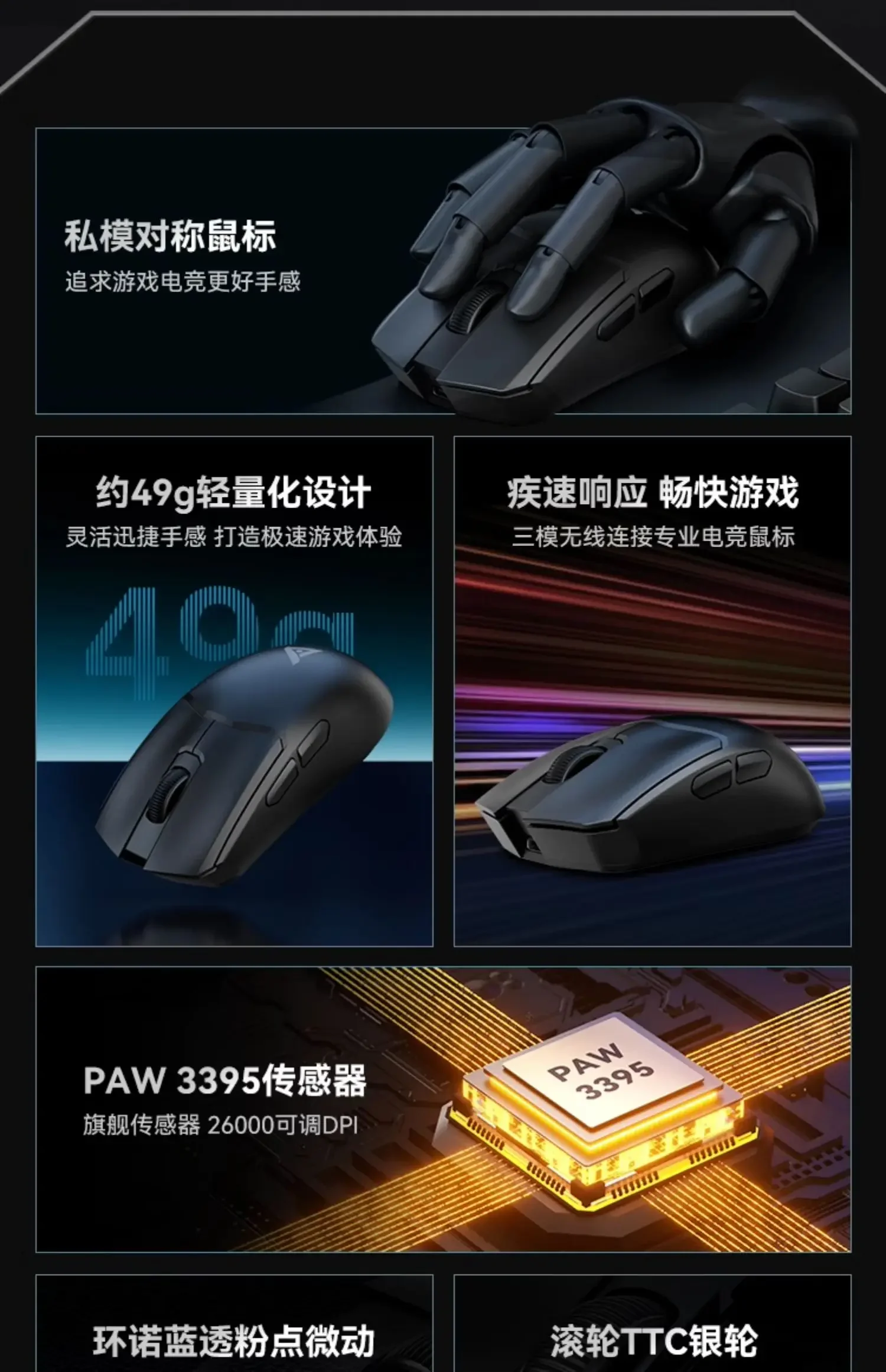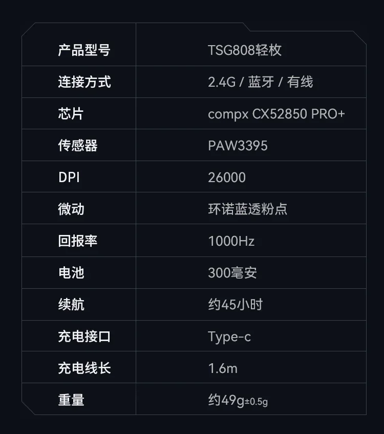 Comprar Ratón inalámbrico Bluetooth Taidu TSG808, Sensor PAW3395 Tri Mode, resolución óptica de 26000dpi, tasa de retorno de 1000Hz, 49g, ligero