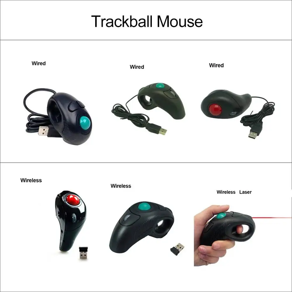 Ratón trackball inalámbrico y con cable, ergonómico, mano derecha e izquierda, láser óptico USB, funcionamiento silencioso para PC, tableta, portátil, diseño de oficina