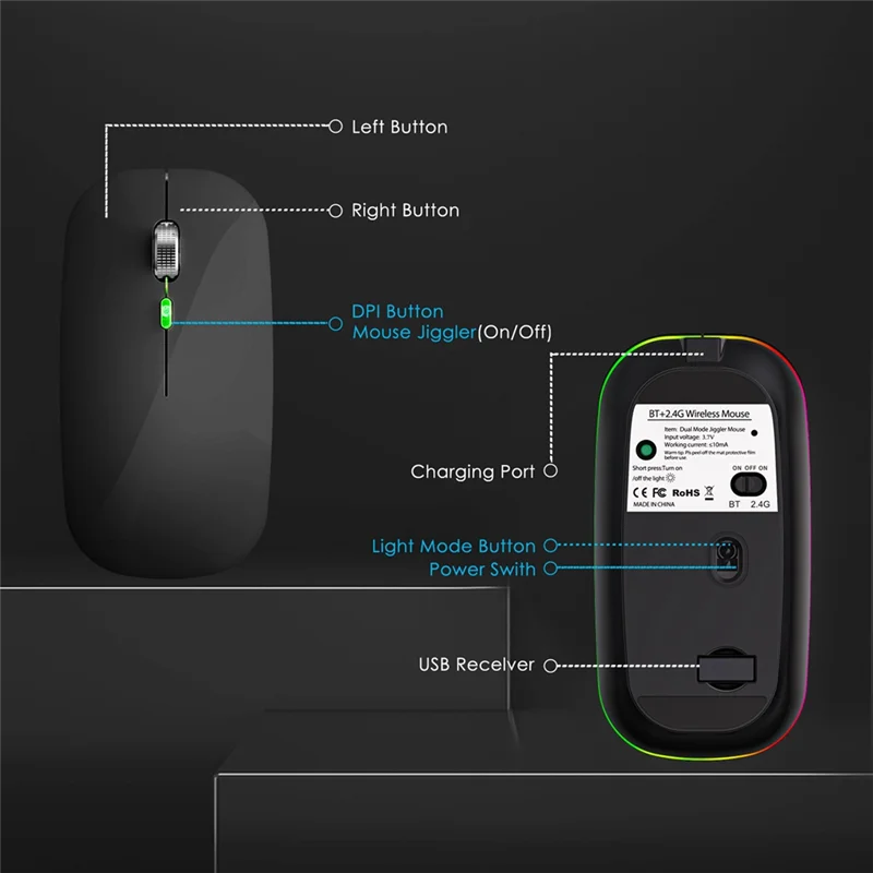 Comprar Ratón inalámbrico BT5.1 + 2,4 Ghz con mouse Jiggler, ratón recargable 2,4G, ratón Mover para USB habilitado