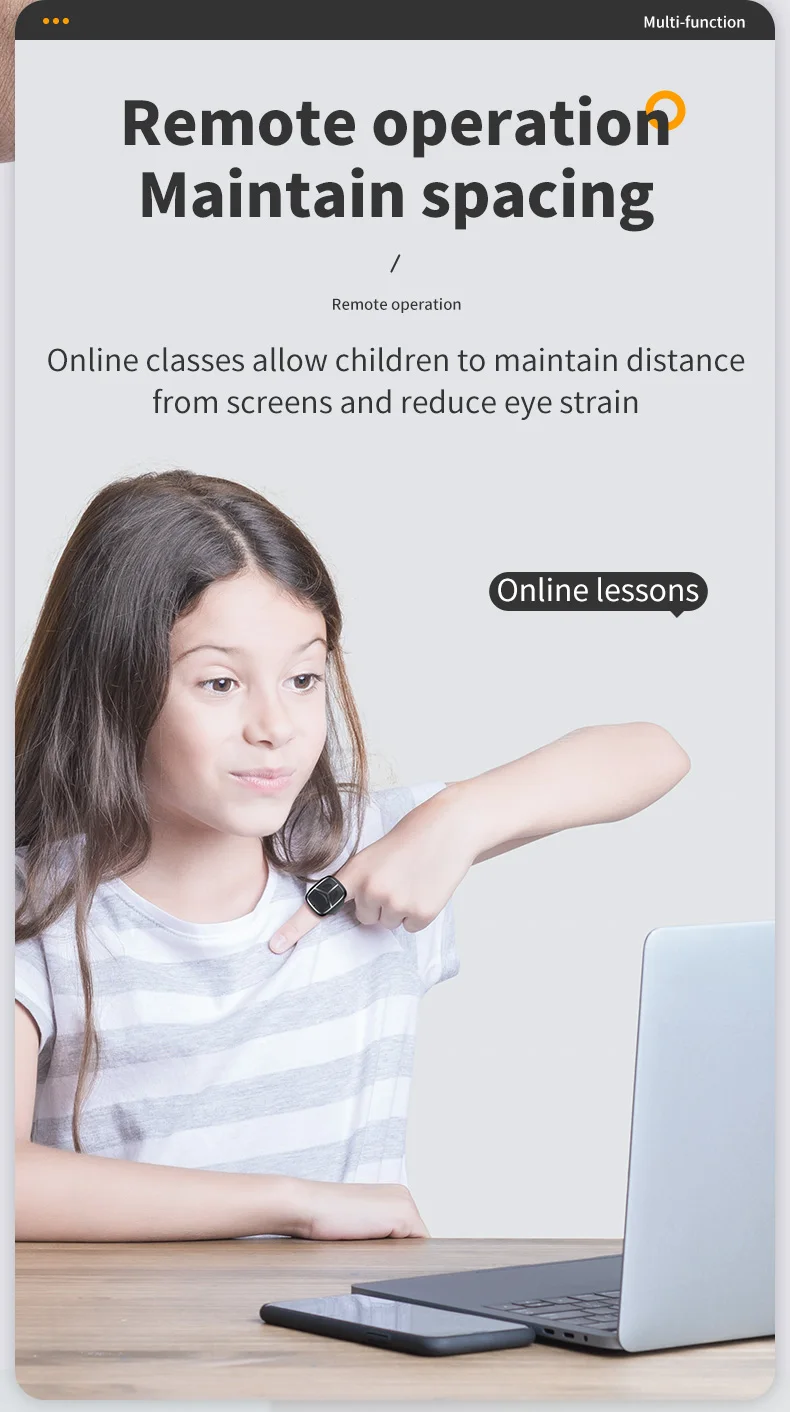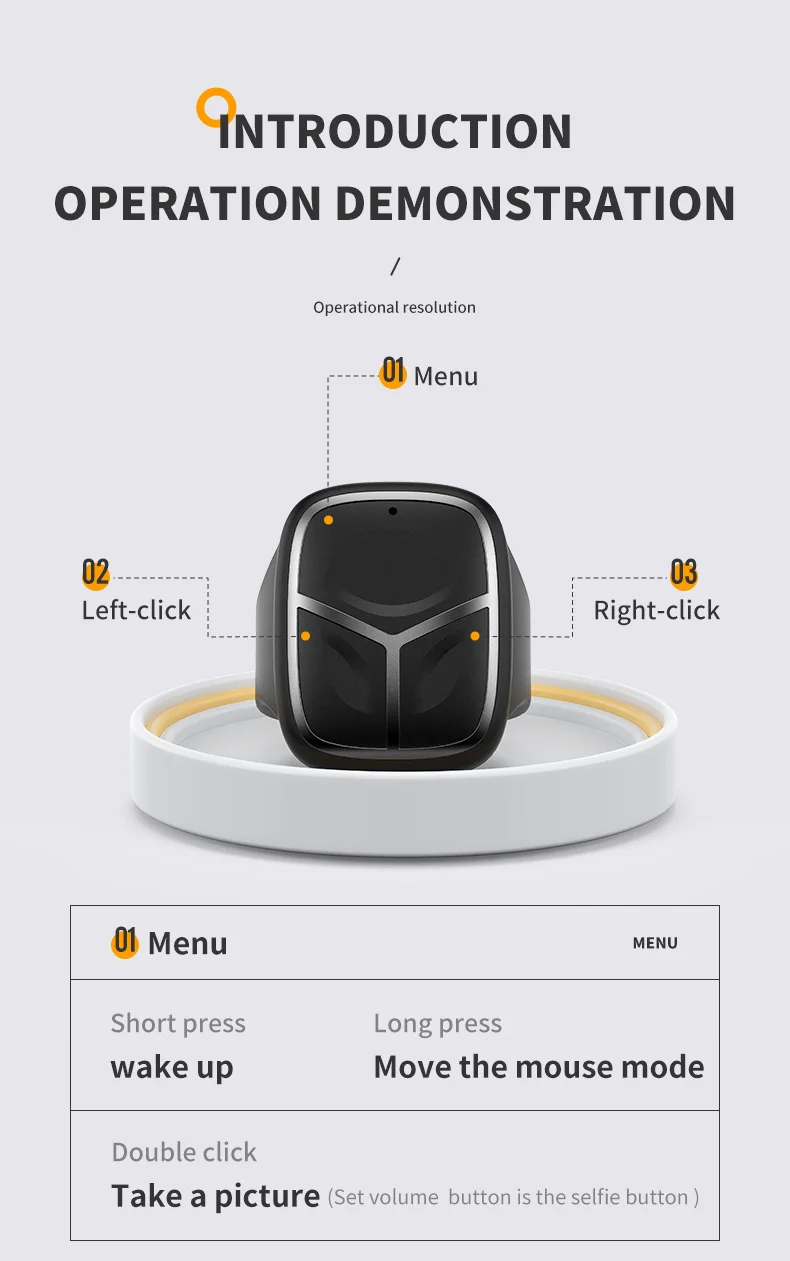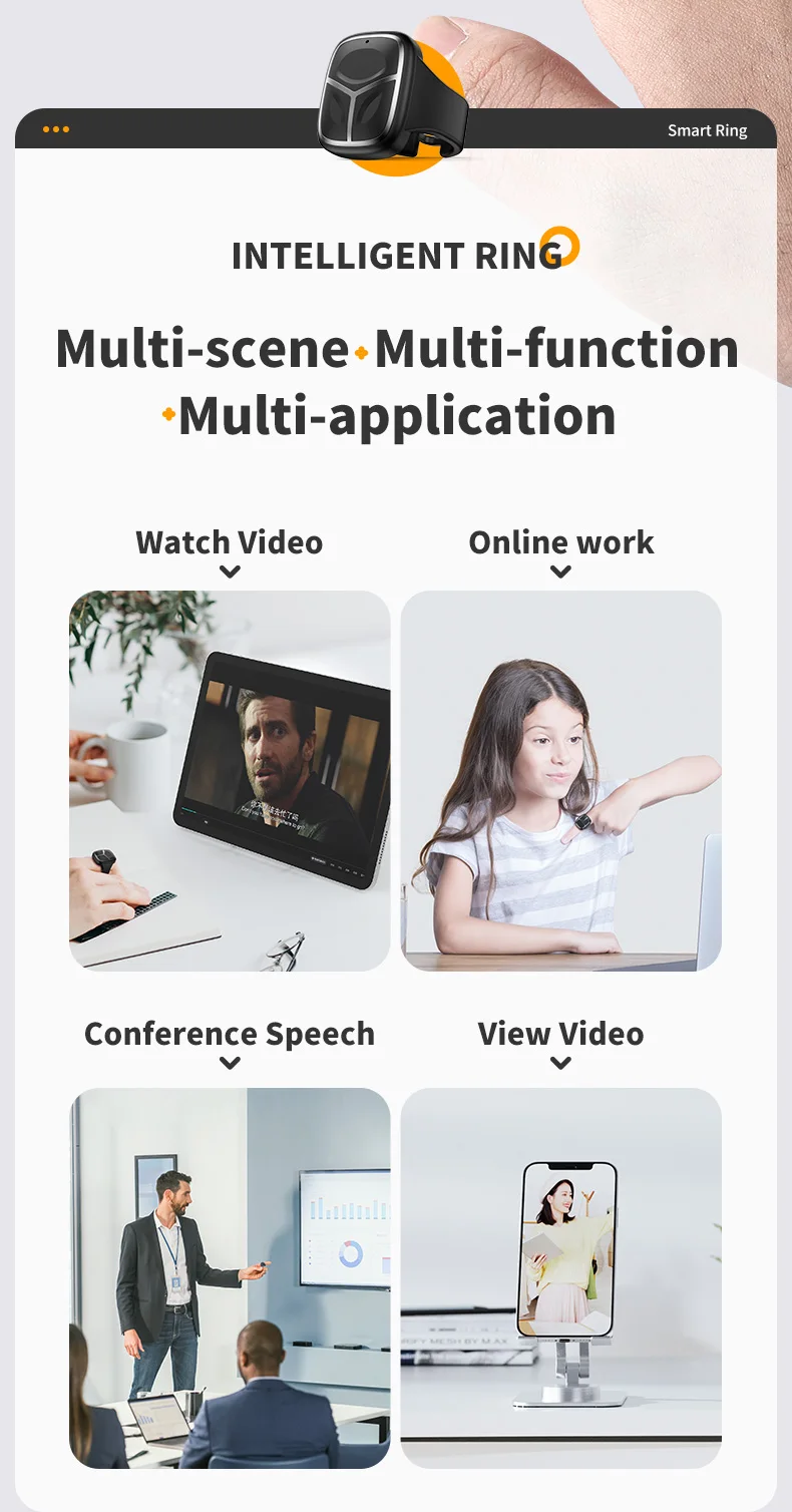 1.Cambio de página con una sola tecla: timbre inteligente multifuncional, que puede pasar páginas con una tecla, pausar como, tomar fotos con una tecla, escanear videos cortos en el aire, controlar computadoras de forma remota, pasar páginas de cómics, etc.