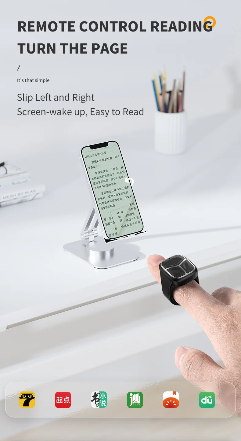 4.Amplias aplicaciones: el volteador de páginas con control remoto se puede utilizar en escenas de ocio como ver películas, clases en línea, discursos en conferencias, ver videos cortos, cocinar, hacer ejercicio y descansar.