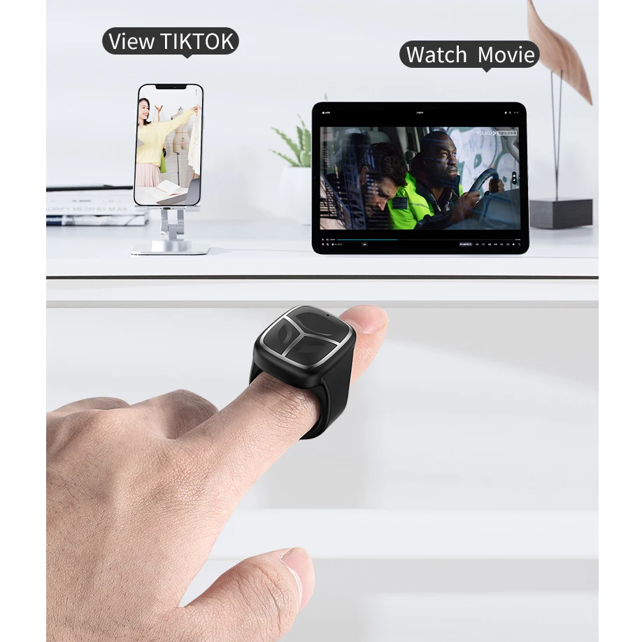 5.Compatibilidad del sistema: el anillo de control remoto es compatible con las aplicaciones convencionales (vídeos cortos, cámaras, novelas, etc.)en el mercado.Es portátil y liviano, y es el mejor compañero para las personas perezosas.Admite la mayoría de los software populares de los sistemas operativos i, Android y Hongmeng.Si desea usarlo en dispositivos IOS, como iPhone y iPad, abra "Configuración" - "Accesibilidad" - "Toque" y active la función táctil de asistencia, que se puede utilizar.