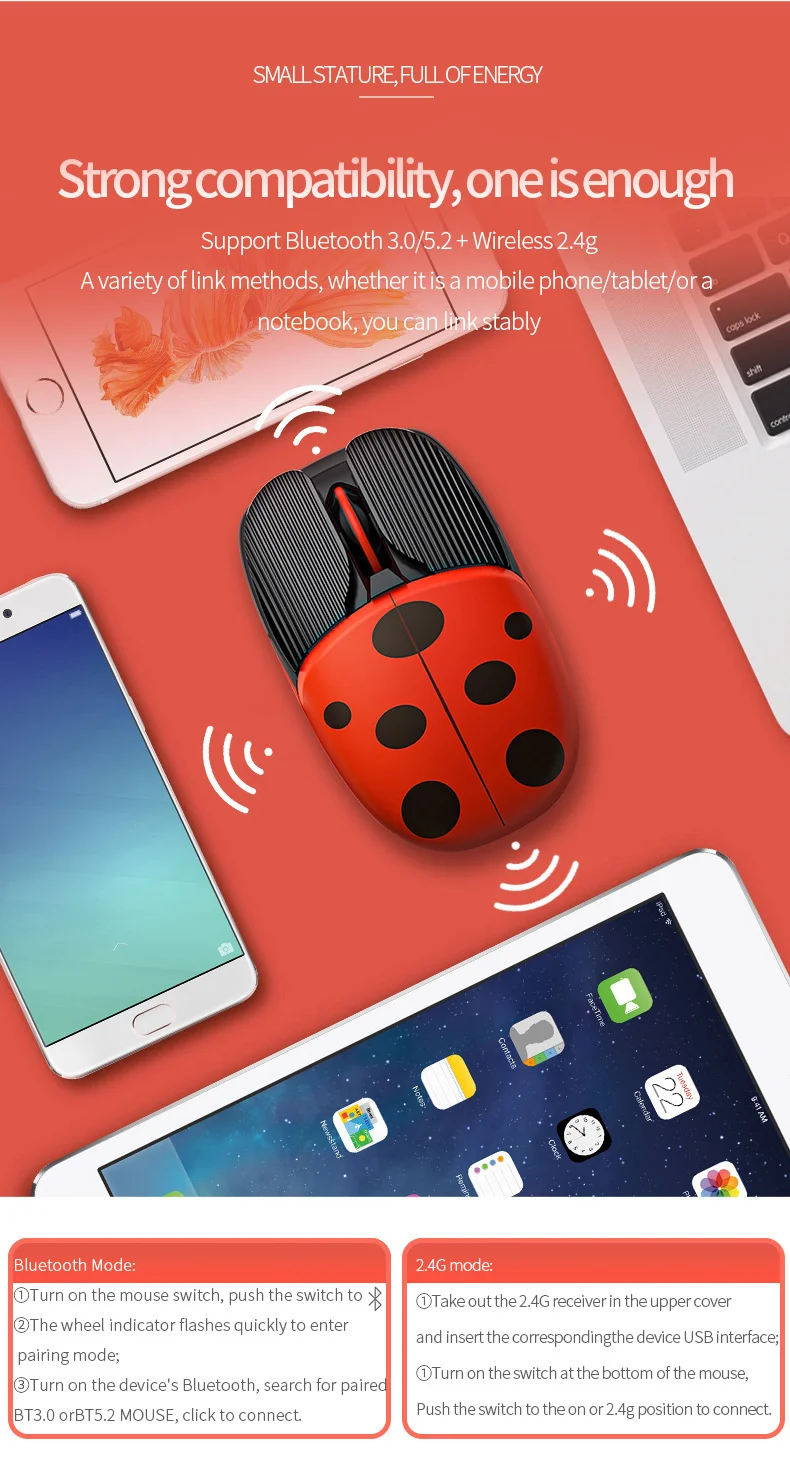 Comprar Ratón inalámbrico de dibujos animados para niños y niñas, Miniratón recargable con Bluetooth, 3 modos, ergonómico, silencioso, portátil, PC, regalo, 2,4G
