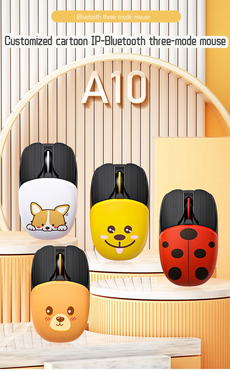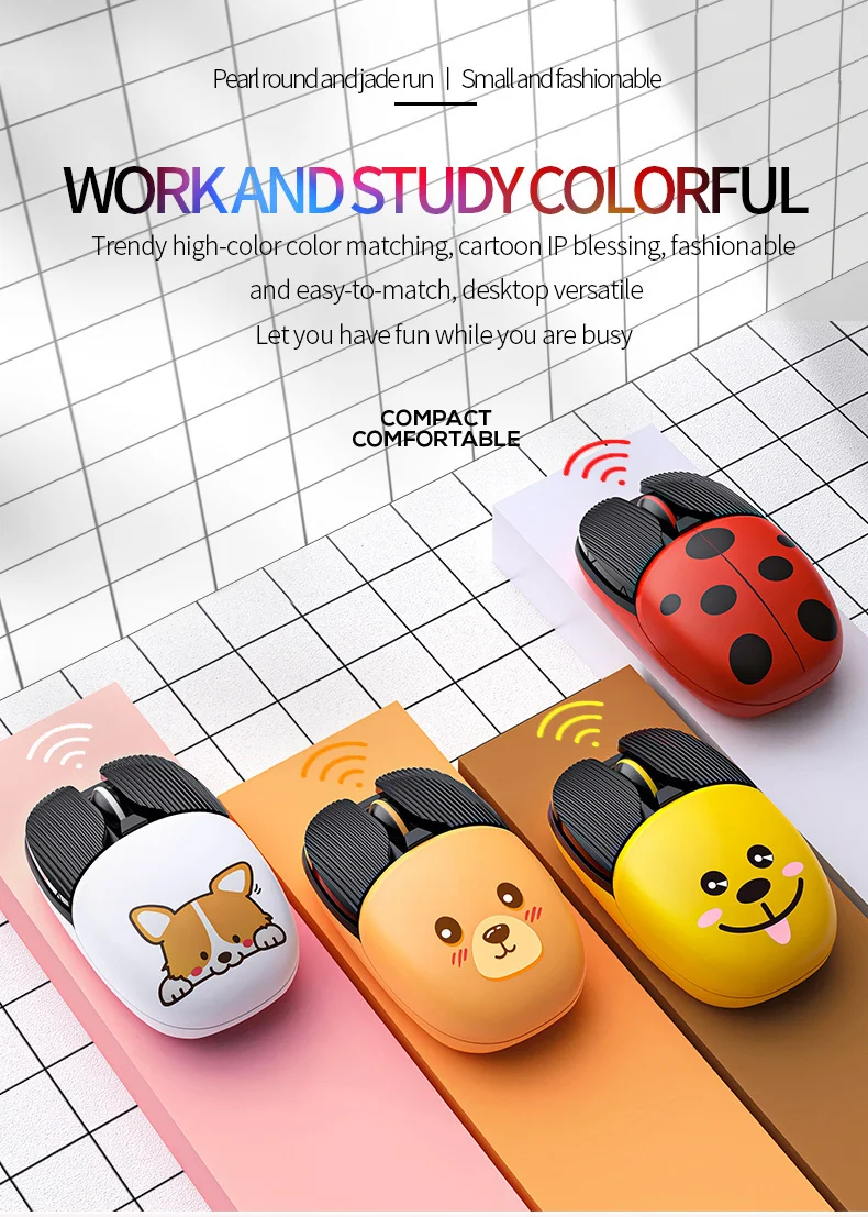 Ratón inalámbrico de dibujos animados con Bluetooth de 2,4G, Mini ratón recargable para juegos, 3 modos, silencioso ergonómico, Mause para chico, niña, regalo, portátil, PC
