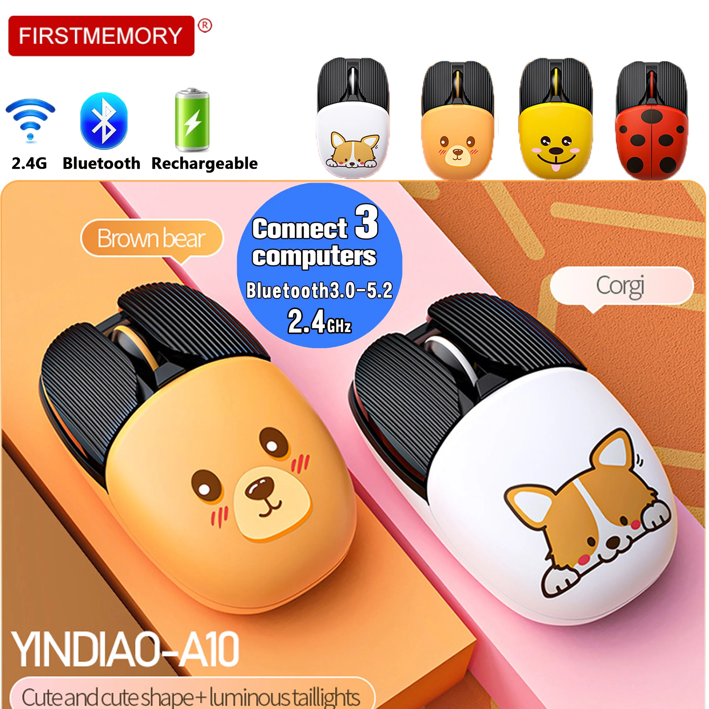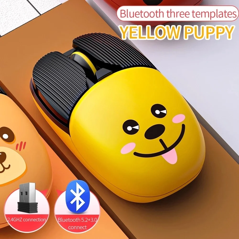 Ratón inalámbrico de dibujos animados con Bluetooth de 2,4G, Mini ratón recargable para juegos, 3 modos, silencioso ergonómico, Mause para chico, niña, regalo, portátil, PC