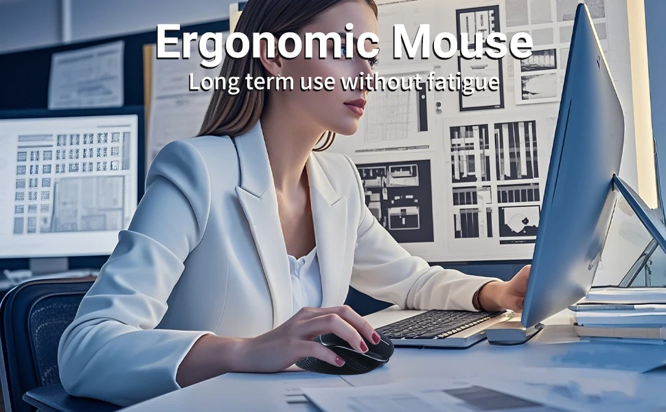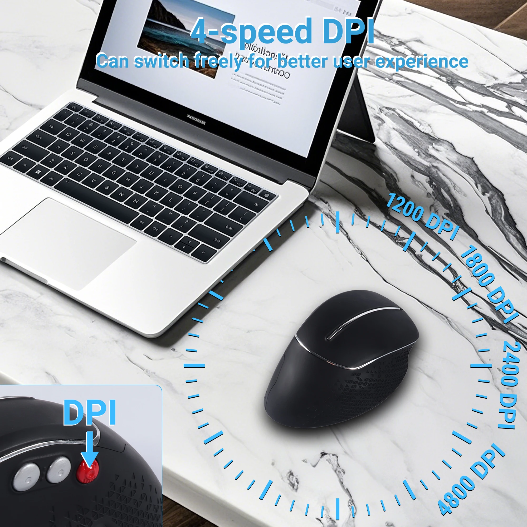 Comprar Ratón inalámbrico de diseño ergonómico, rodillo lateral de 2,4G, 4800 DPI, botón silencioso ajustable, Plug And Play, uso en oficina, Reduce el dolor en la muñeca