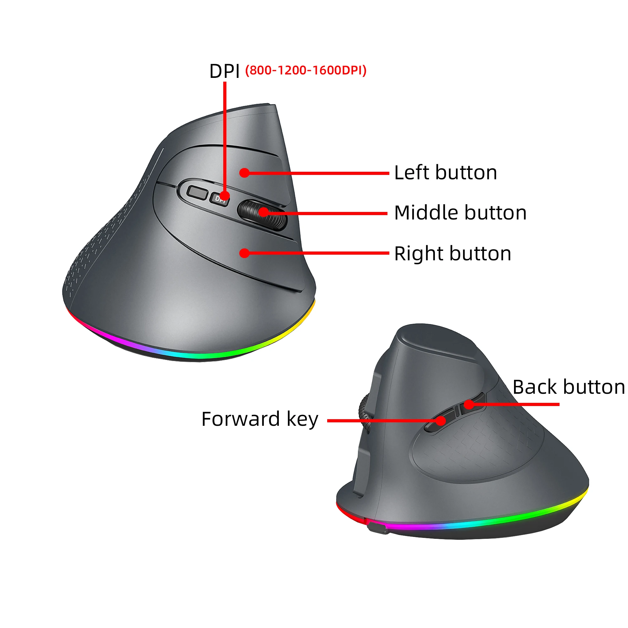 2. Diseño vertical: El diseño vertical único del ratón T25 sigue los principios ergonómicos, reduciendo eficazmente la fatiga de la mano y proporcionando una experiencia más cómoda y natural durante un uso prolongado.