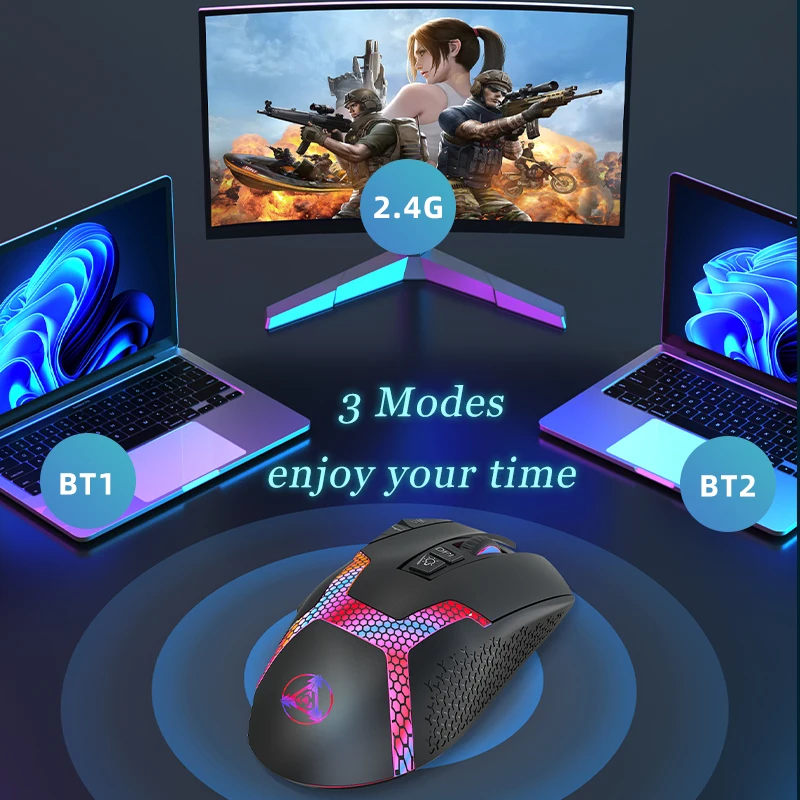 Comprar Ratón inalámbrico Dual con Bluetooth 2,4G, Mouse ergonómico con cable, trimodo, carga Universal, silencioso, para oficina y juegos