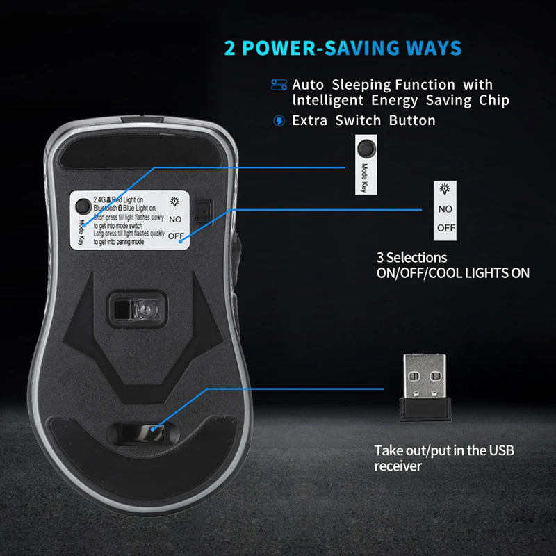 Ratón inalámbrico de modo dual, silencioso, de siete colores, con carga de luz, Bluetooth, Universal para juegos y oficina, nuevo 2025.