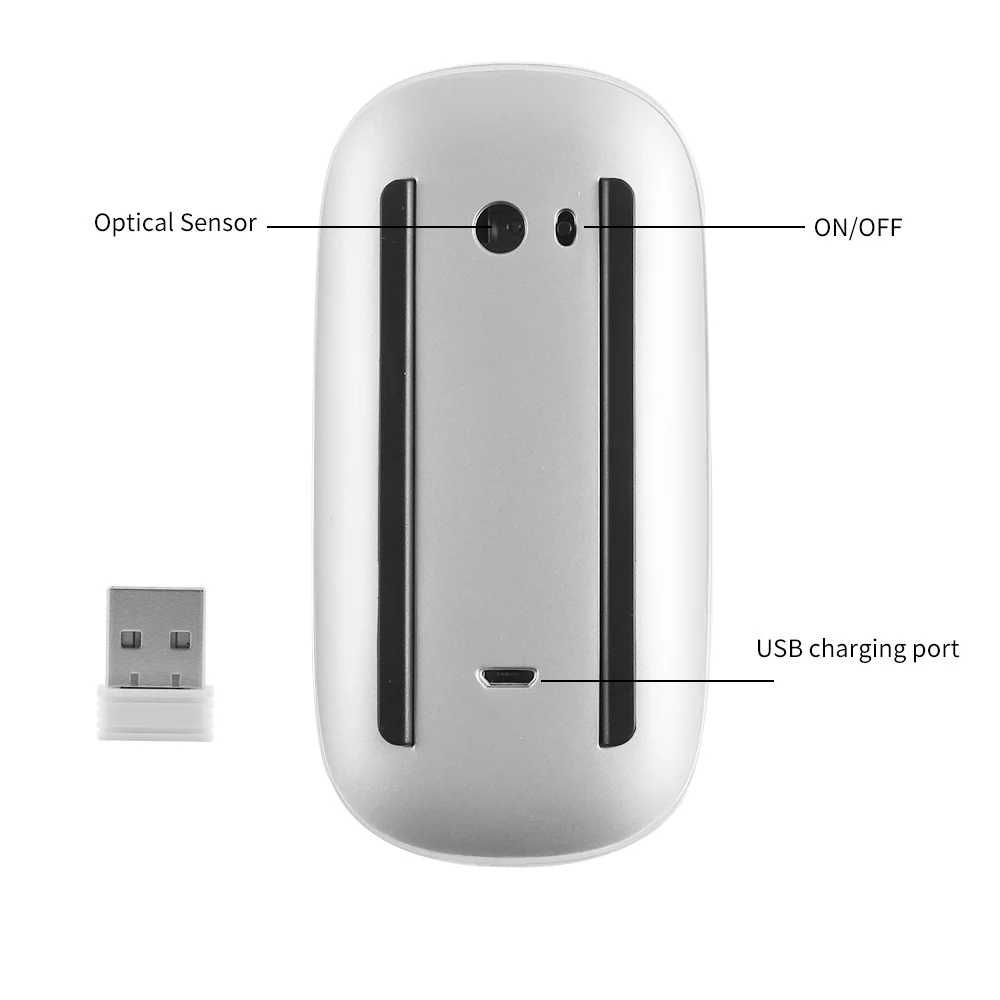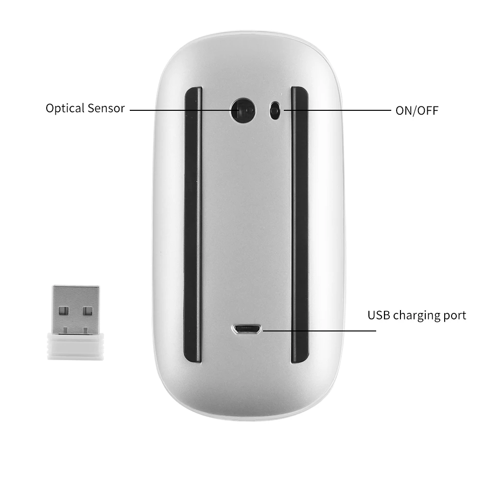 Ratón ergonómico inalámbrico de 2,4G, ratón mágico táctil Delgado, Mini ratón silencioso recargable para ordenador portátil Microsoft Mac PC con bolsa