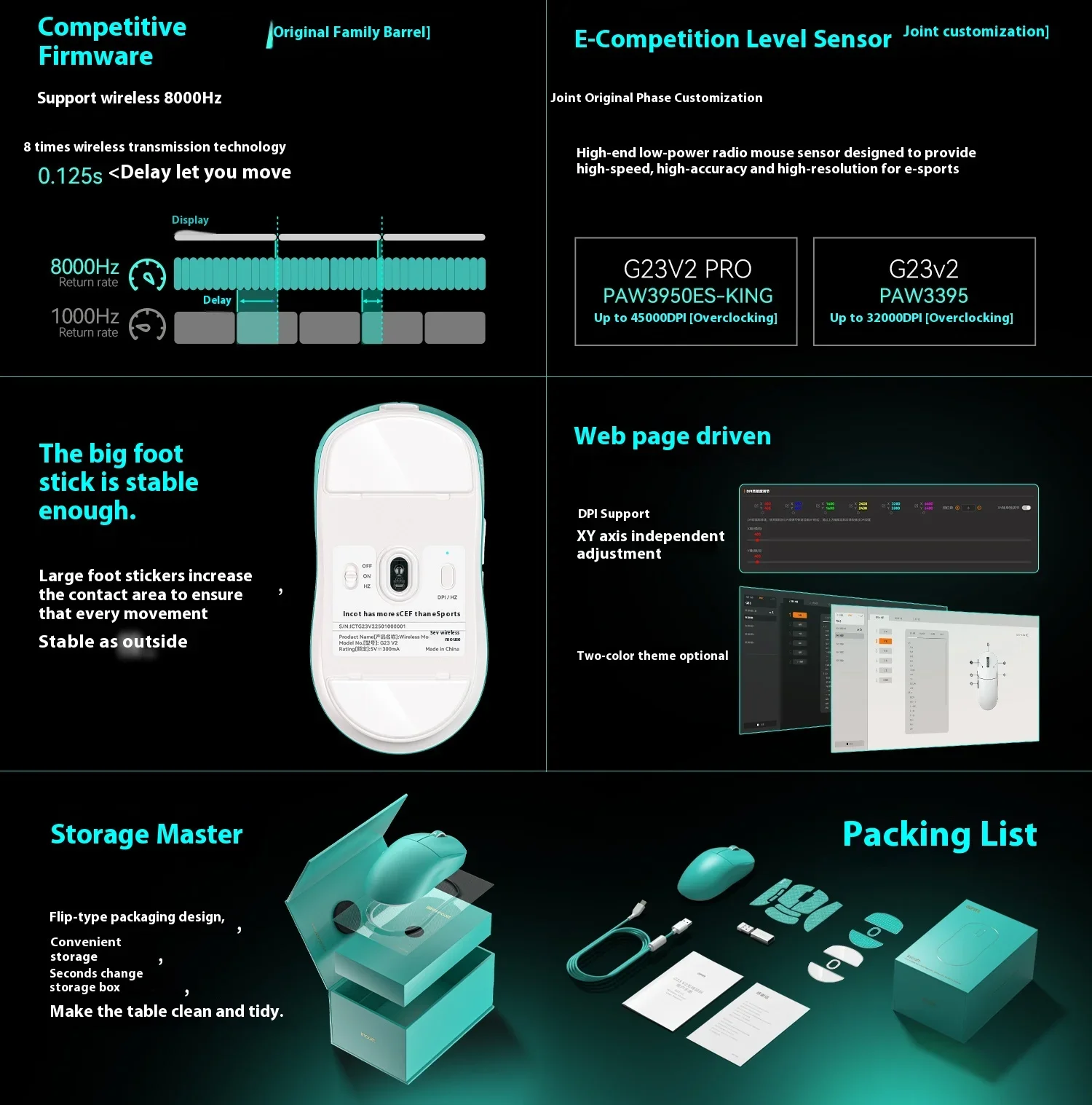 Comprar Ratón inalámbrico Incott G23 V2 Tri Mode PAW3395 ratón para juegos preciso nuevo ergonómico ligero 47G Pc Gamer accesorio ratones regalos