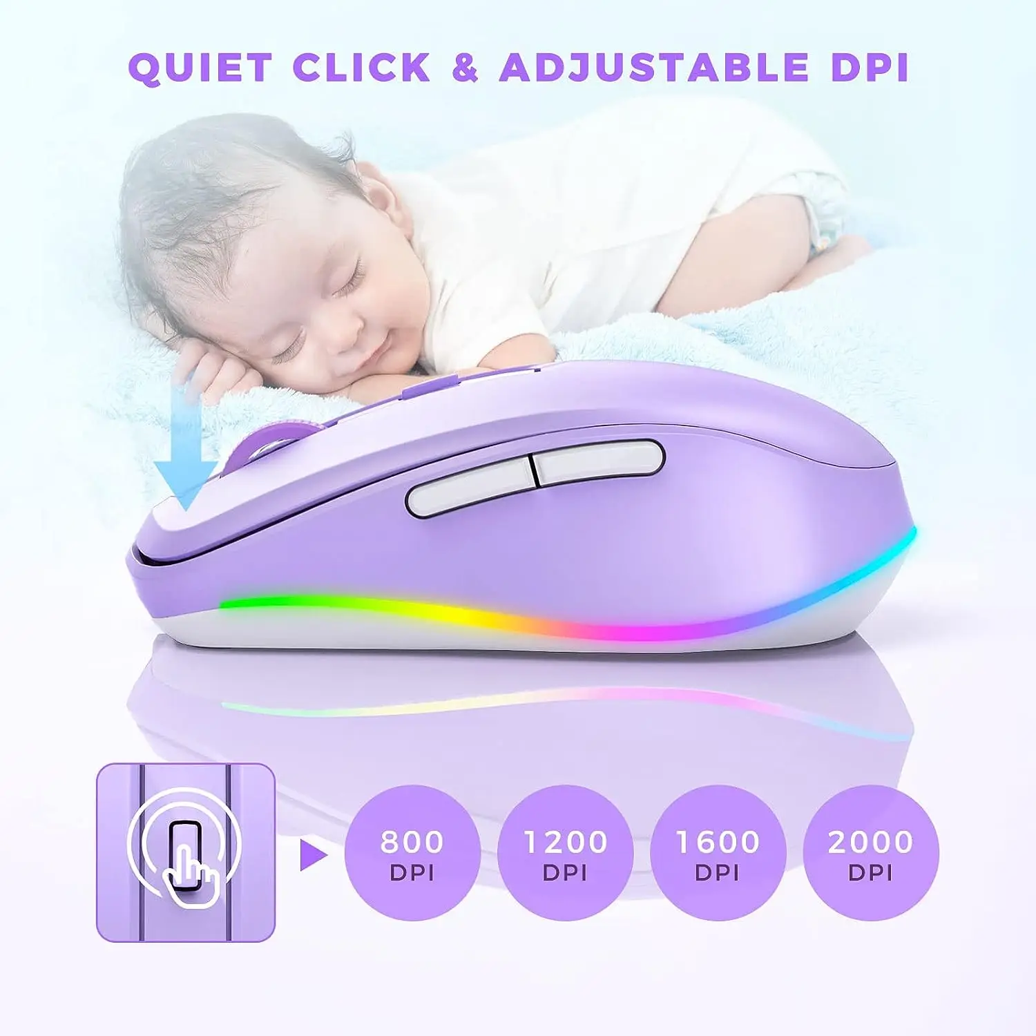 Batería recargable duradera incorporada, se puede recargar fácilmente con el cable de la USB-C incluido. El ratón de clic silencioso reduce 90% ruidos, lo que lo convierte en un ratón ideal para oficina/hogar/viaje.