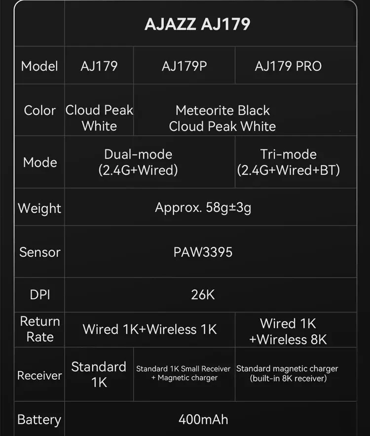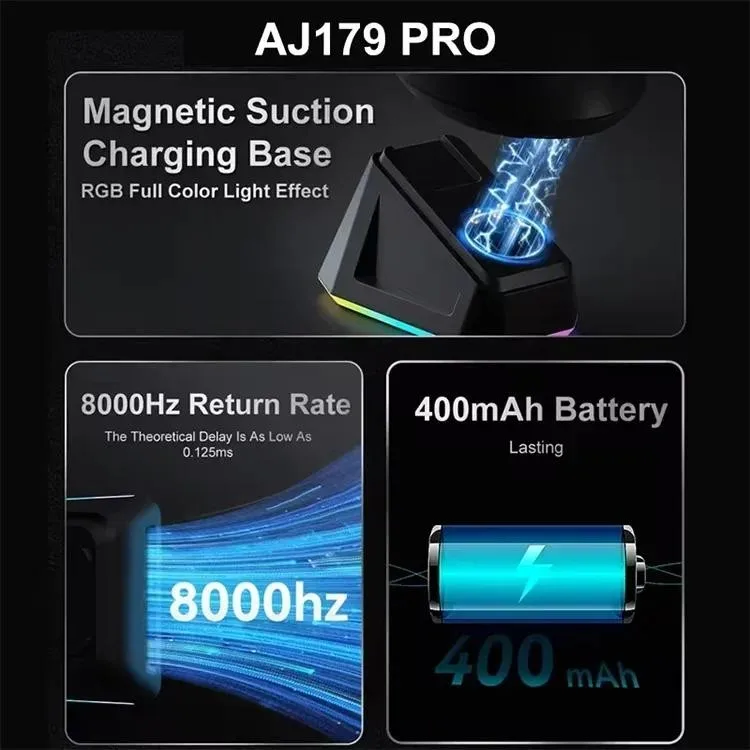 Ratón inalámbrico para juegos AJAZZ AJ179 PRO PAW3395 2,4G/con cable/BT ligero ergonómico con Base de carga magnética para jugadores de deportes electrónicos