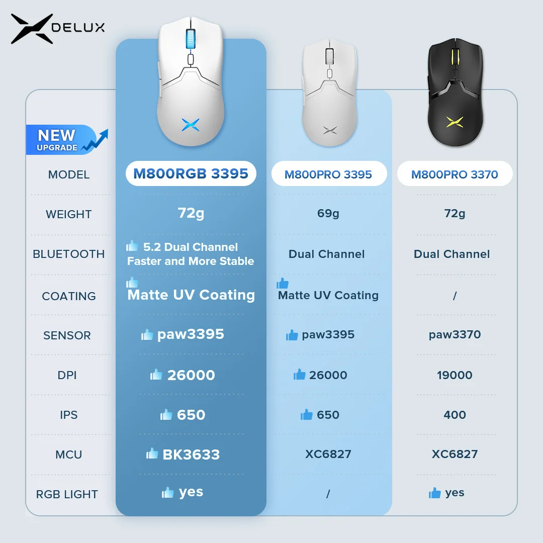 DELUX M800 RGB PAW3395 Gaming Mouse