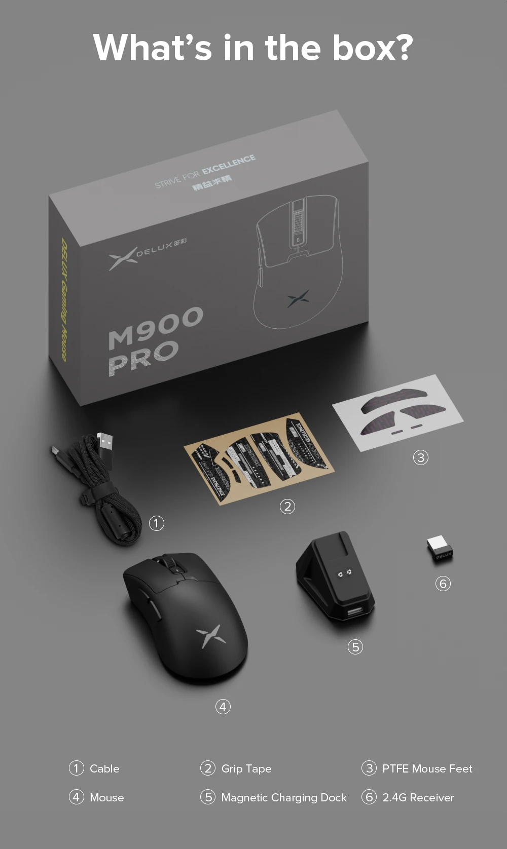 Comprar Ratón inalámbrico para juegos Delux M900PRO, ergonómico, 8K, velocidad de orolling PAW3395, base de carga RGB magnética de 63g para jugadores de PC de mano grande derecha