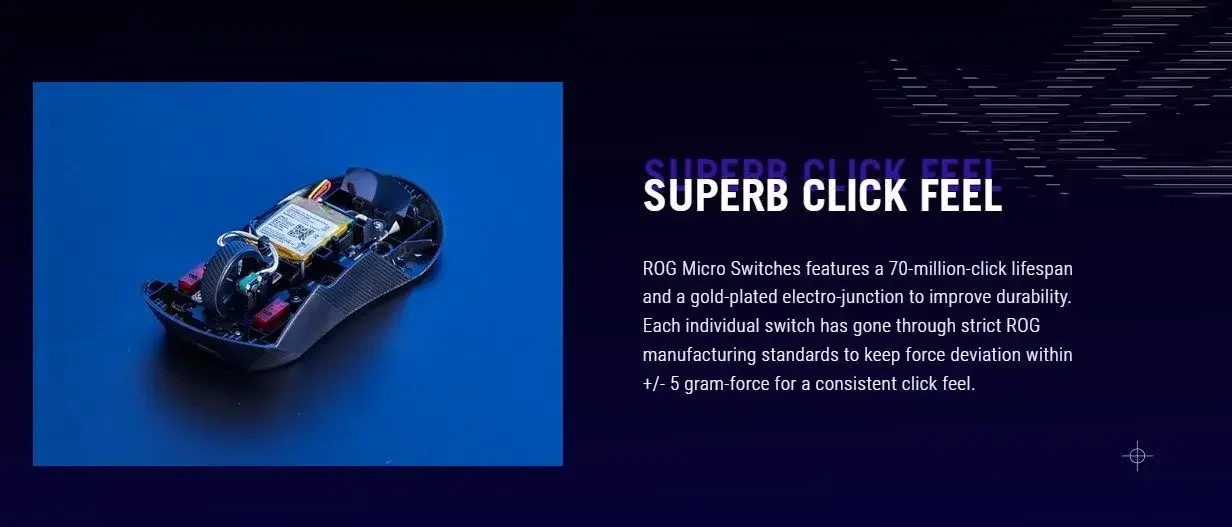 1. Precisión perfecta: sensor óptico ROG AimPoint de 36000 ppp con 650 fps y tasa de aceleración de 50 g, más velocidad de sondeo de 1000 Hz