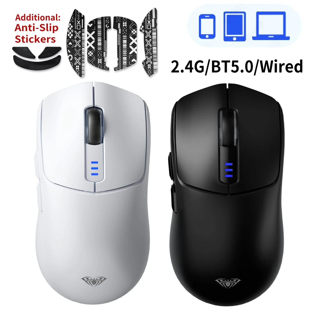 Ratón inalámbrico para juegos Tri-Mode 2,4G/BT5.0/con cable con pegatinas antideslizantes ratones ergonómicos recargables de 10000 DPI para PC portátil Mac