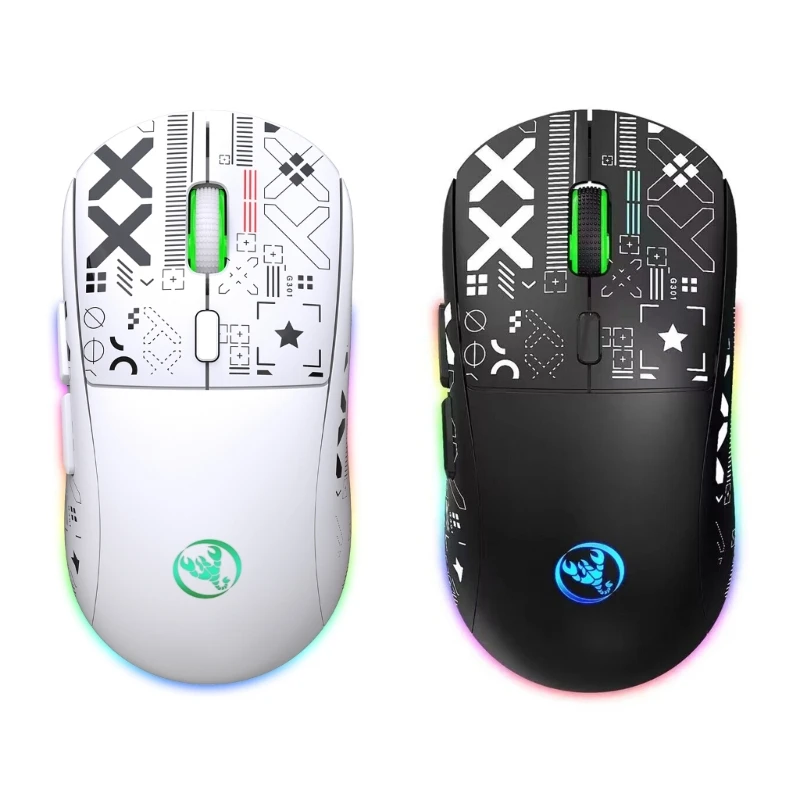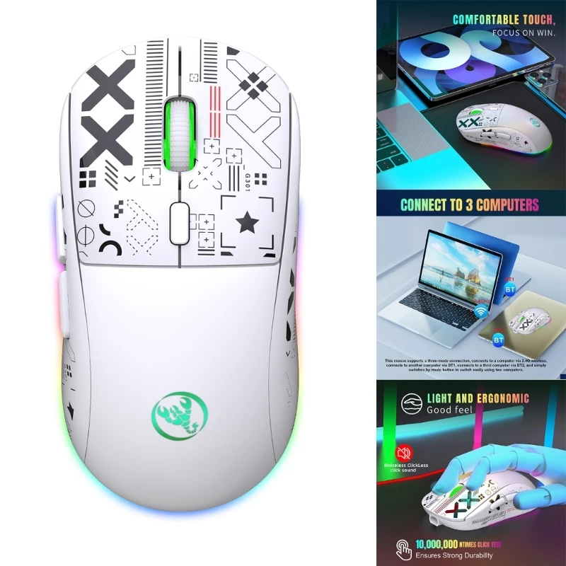 Comprar Ratón inalámbrico para juegos trimodo 2,4 GHz, compatible con Bluetooth Dual, Sensor de 3600DPI intercambiable en caliente, luz RGB
